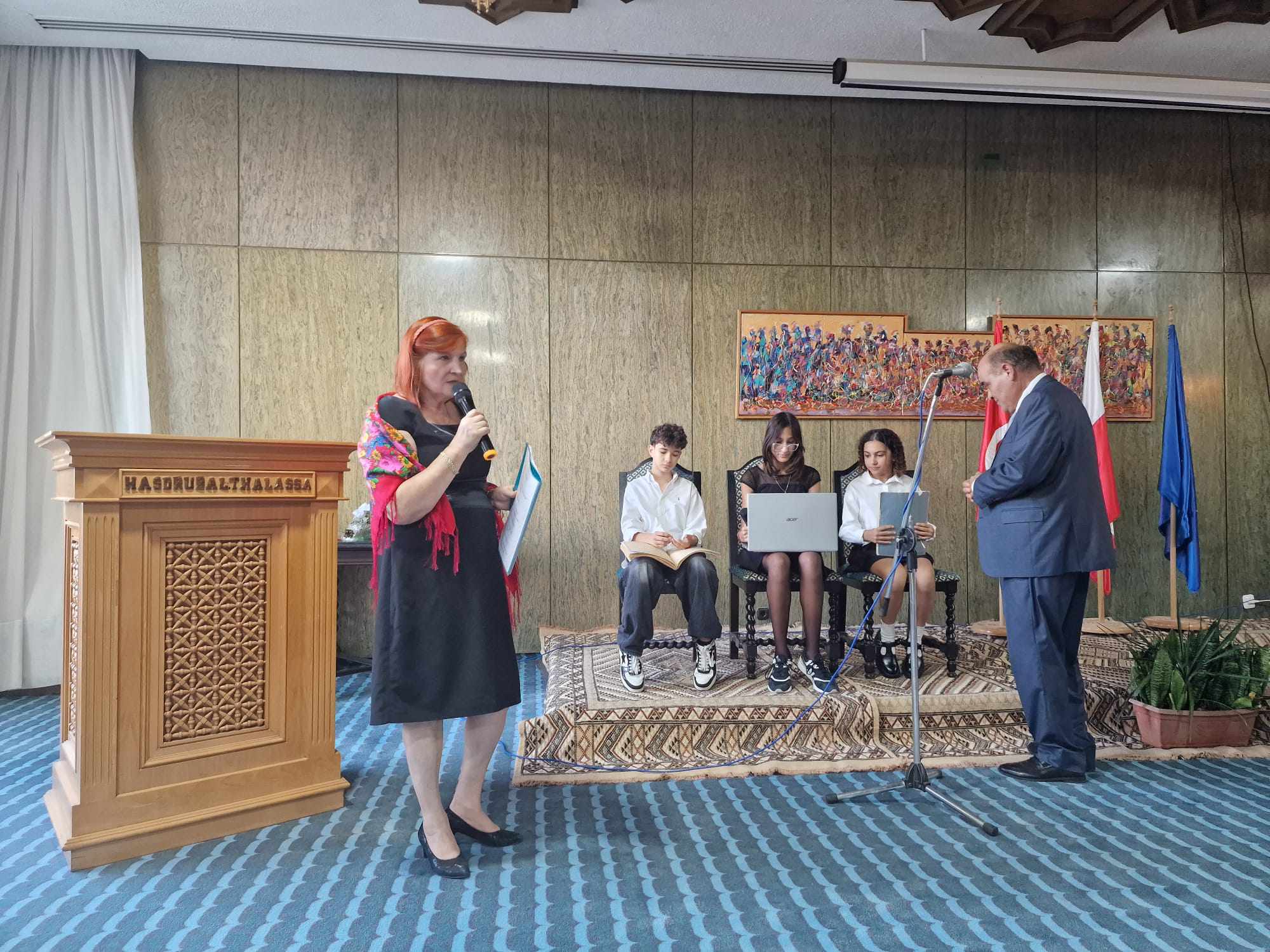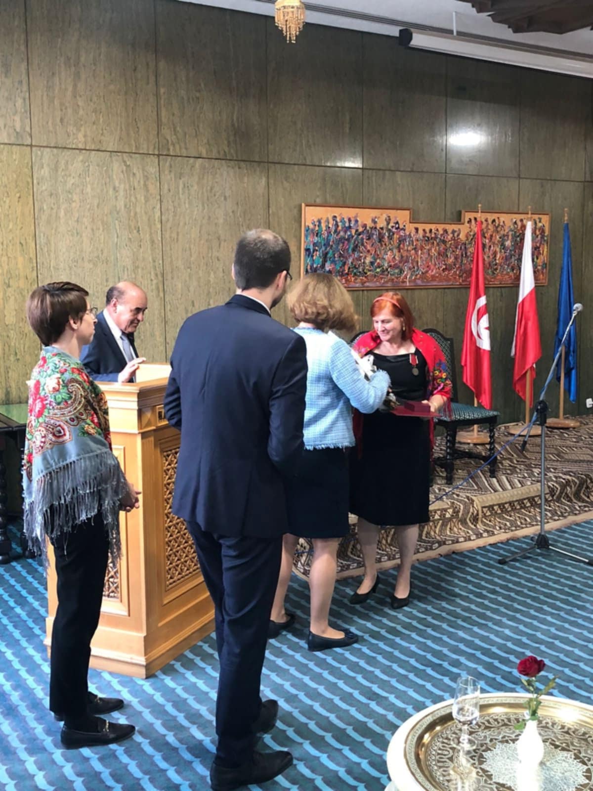 Uroczystość odbyła się w dniu 24 listopada br., a wśród zgromadzonych gości obecna była lokalna Polonia wraz z reprezentantami stowarzyszenia Domu Polskiego oraz tunezyjscy przyjaciele. Zaproszonych gości przywitała ambasador Justyna Porazińska oraz konsul Aziz Fredj. Kulminacyjnym punktem uroczystości było odznaczenie pani Sylwii Aziz Odznaką Honorową „Bene merito”, którą w imieniu Ministra Spraw Zagranicznych uroczyście wręczyła ambasador Justyna Porazińska .