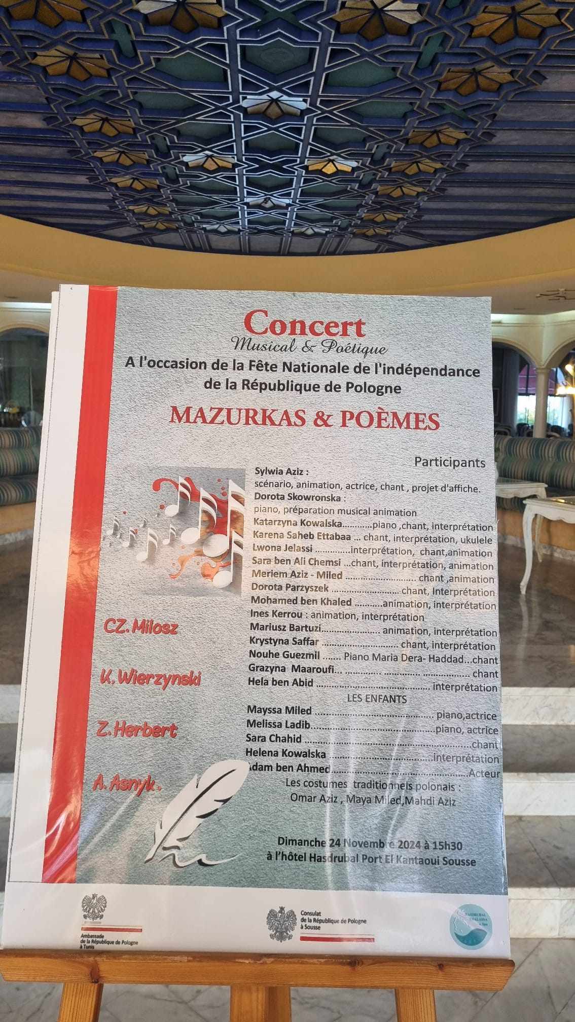 Podobnie jak w ubiegłych latach, Ambasada RP w Tunisie oraz Konsulat Honorowy RP w Sousse wspólnie zorganizowali uroczyste obchody Święta Niepodległości w Sousse.