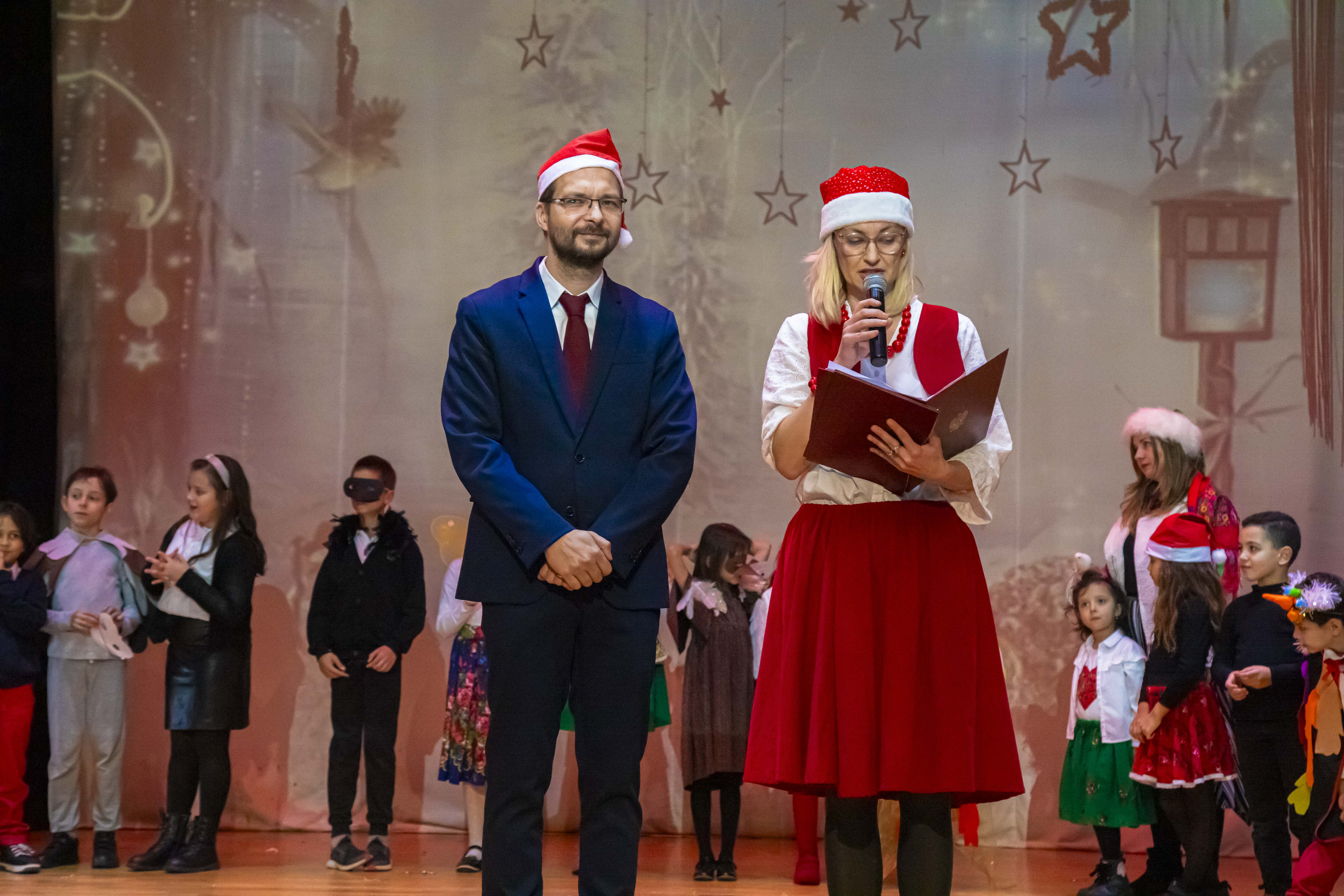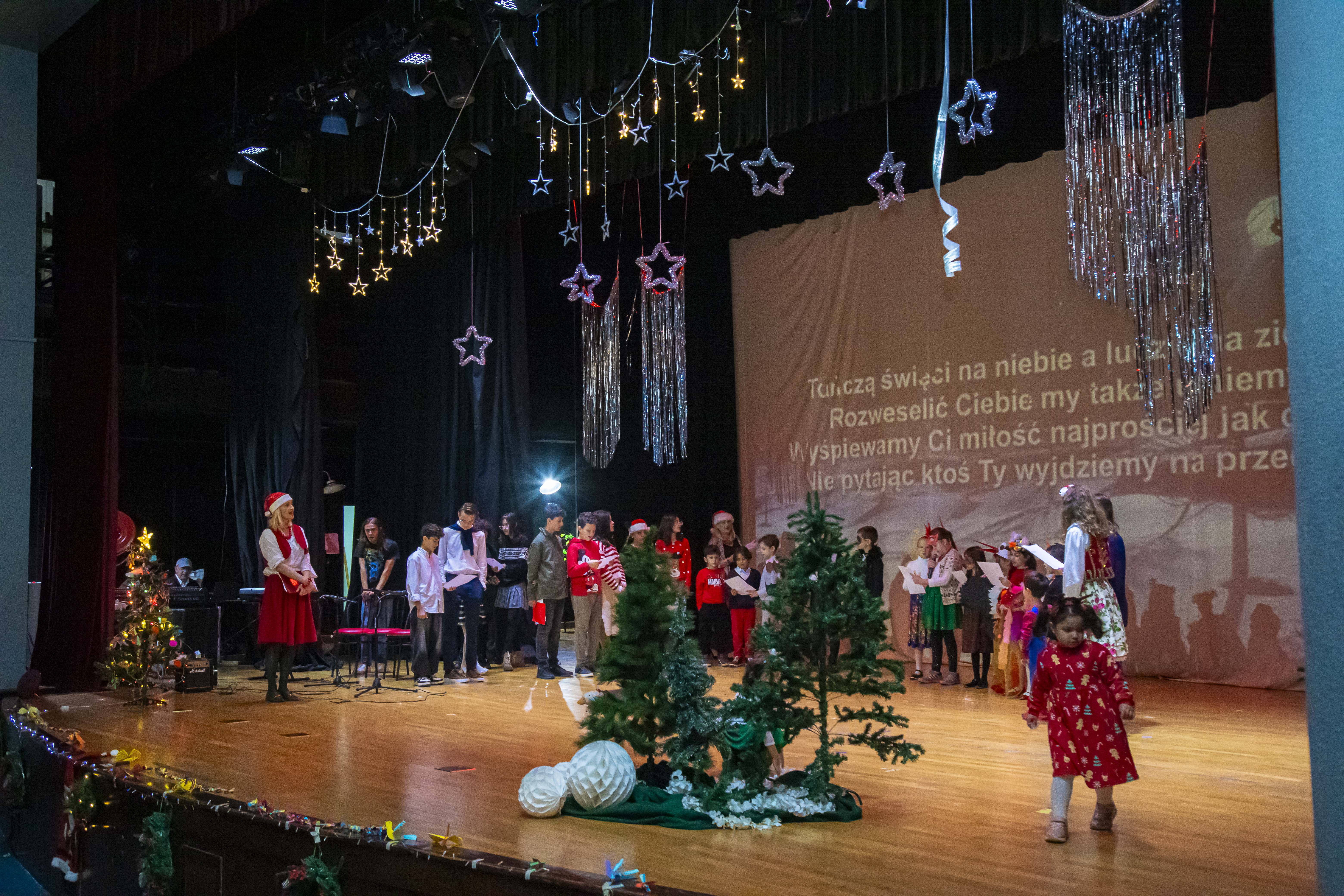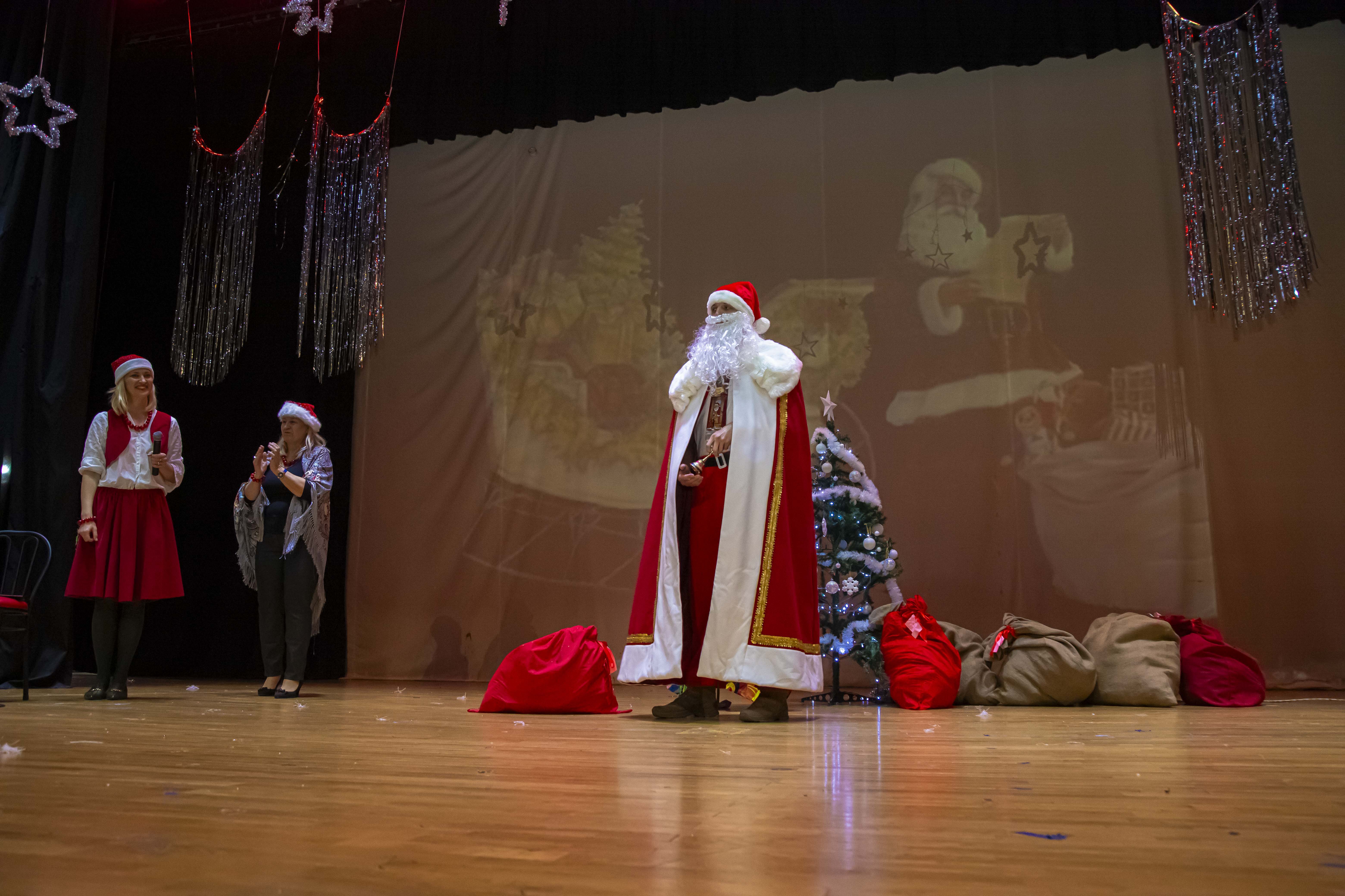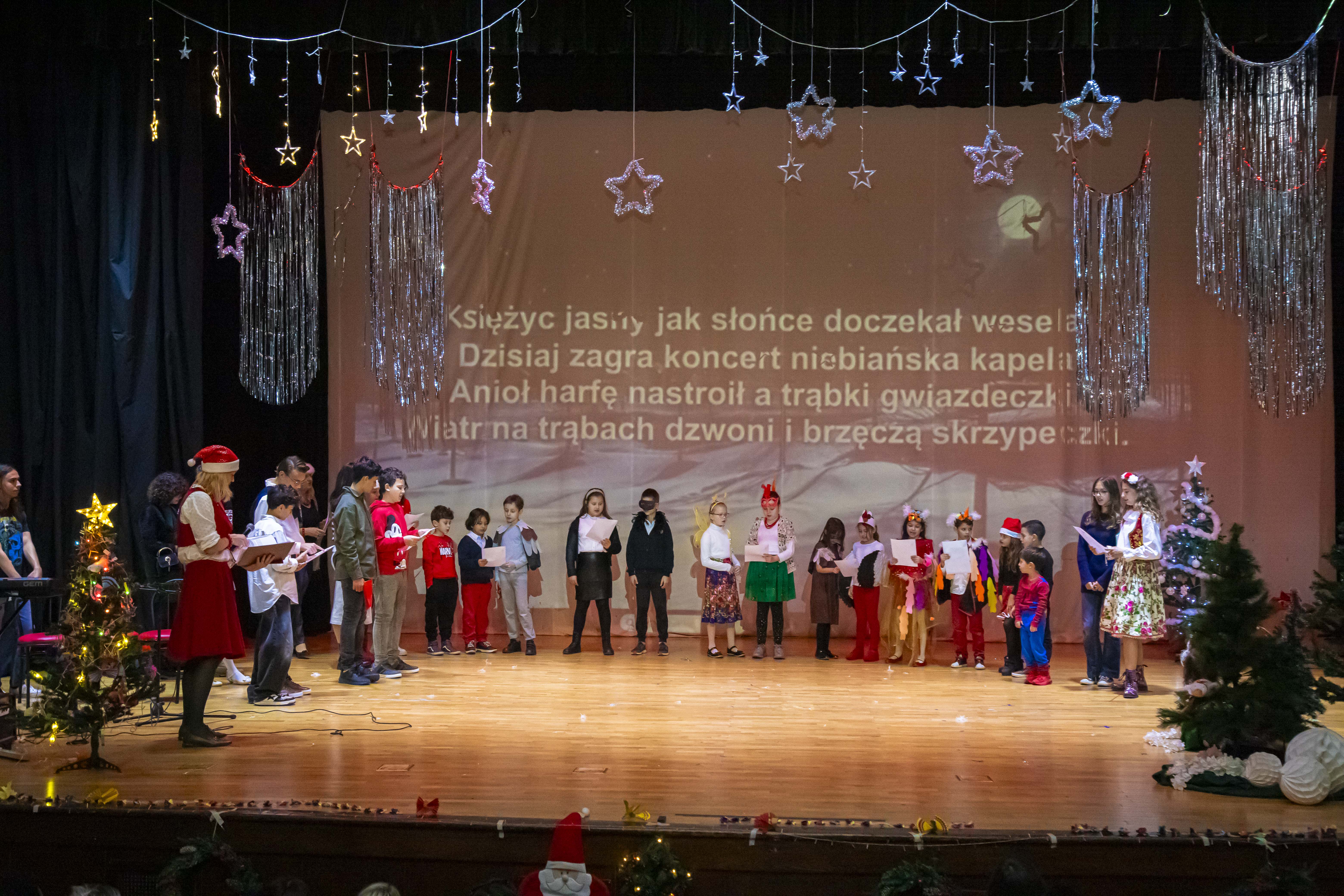 Przedstawienie pt. „Ptasie Święta” w wykonaniu dzieci ze Szkoły Polskiej, wprowadziło wszystkich w świąteczny nastrój. Uroczystość zakończyła się wizytą Świętego Mikołaja, który wręczył wszystkim dzieciom prezenty.