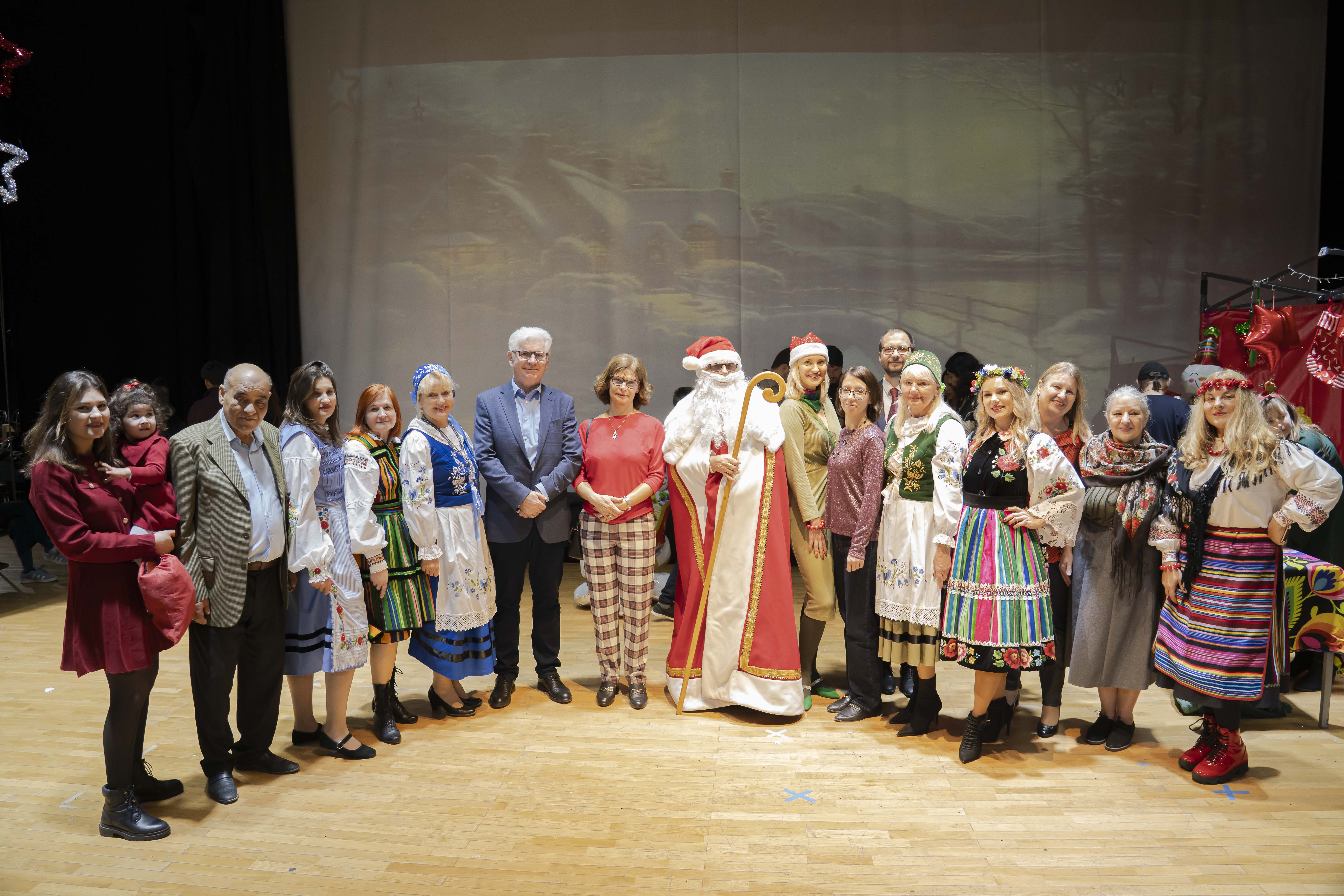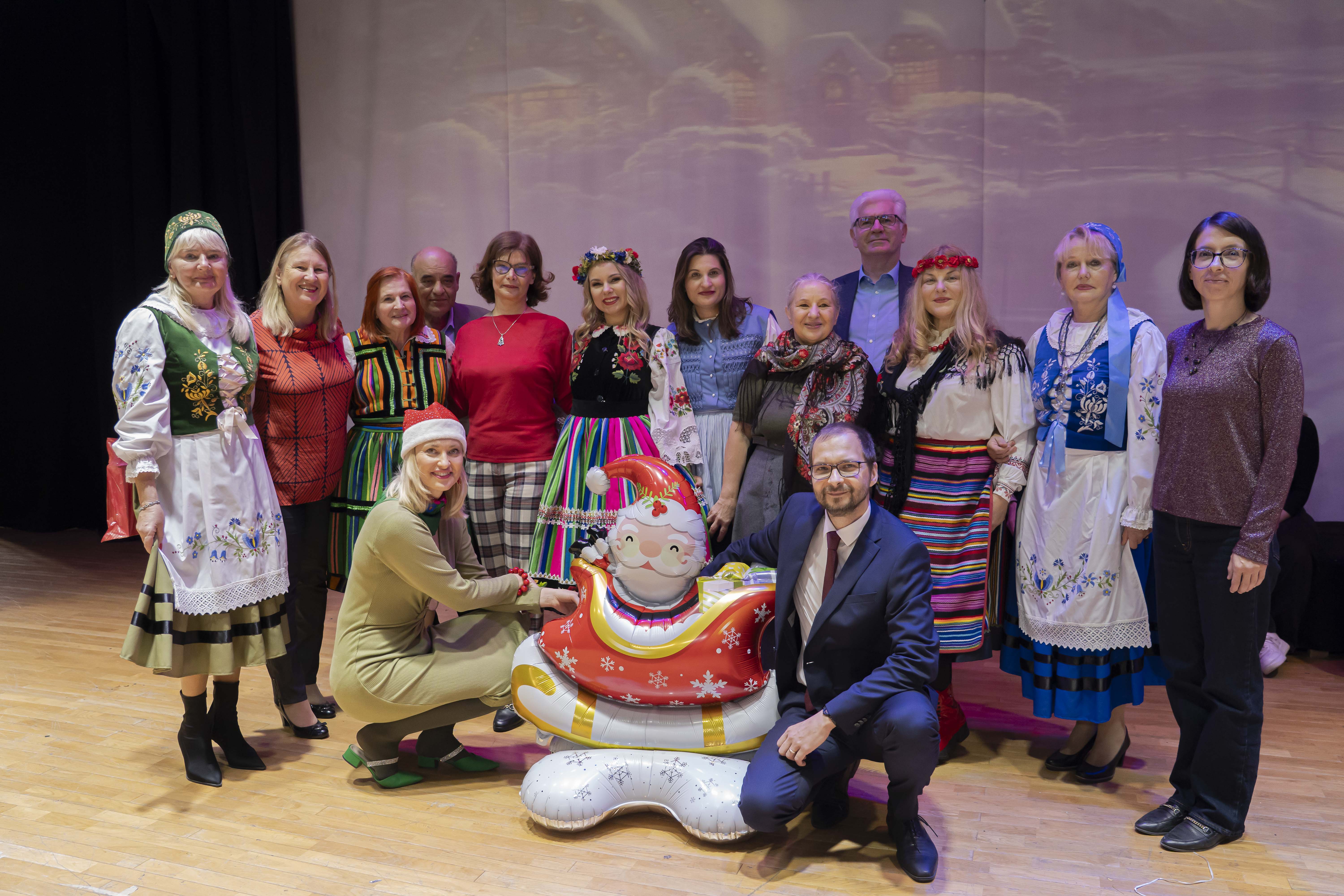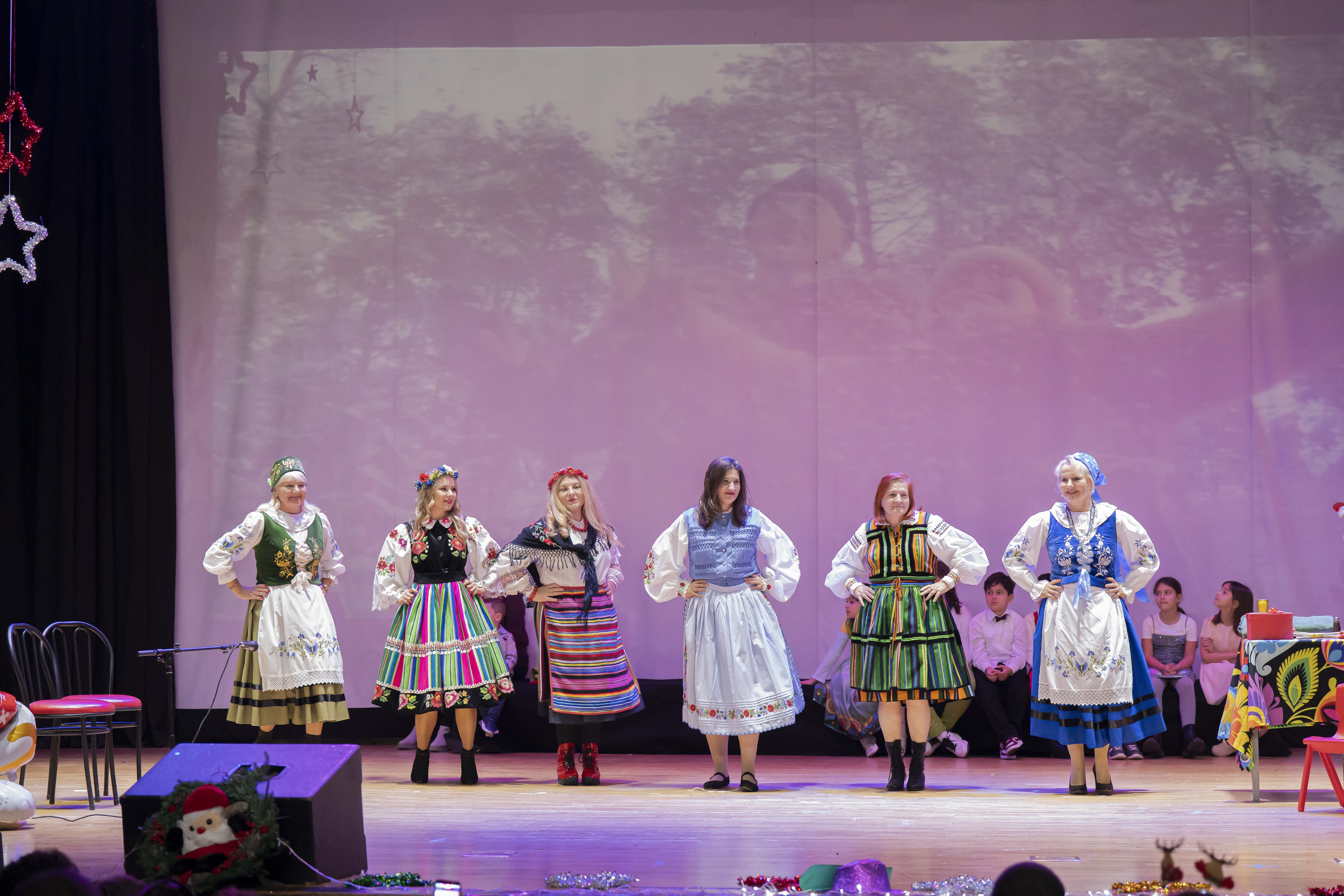 Dodatkową atrakcją był występ artystyczny mam z Sousse, które w barwnych folkowych strojach zaprezentowały polską pastorałkę wraz z tradycyjnym tańcem ludowym. Uroczystość zakończyła się wizytą Świętego Mikołaja i wręczeniem okolicznościowych prezentów wszystkim obecnym dzieciom.