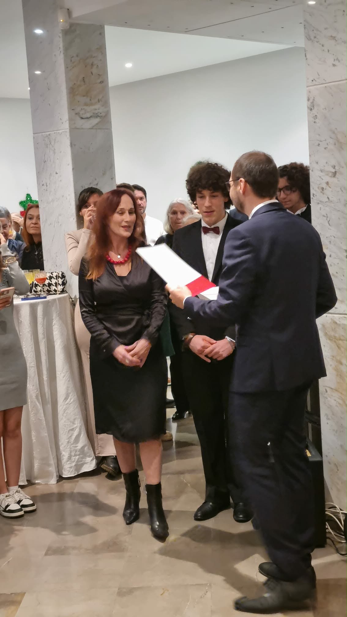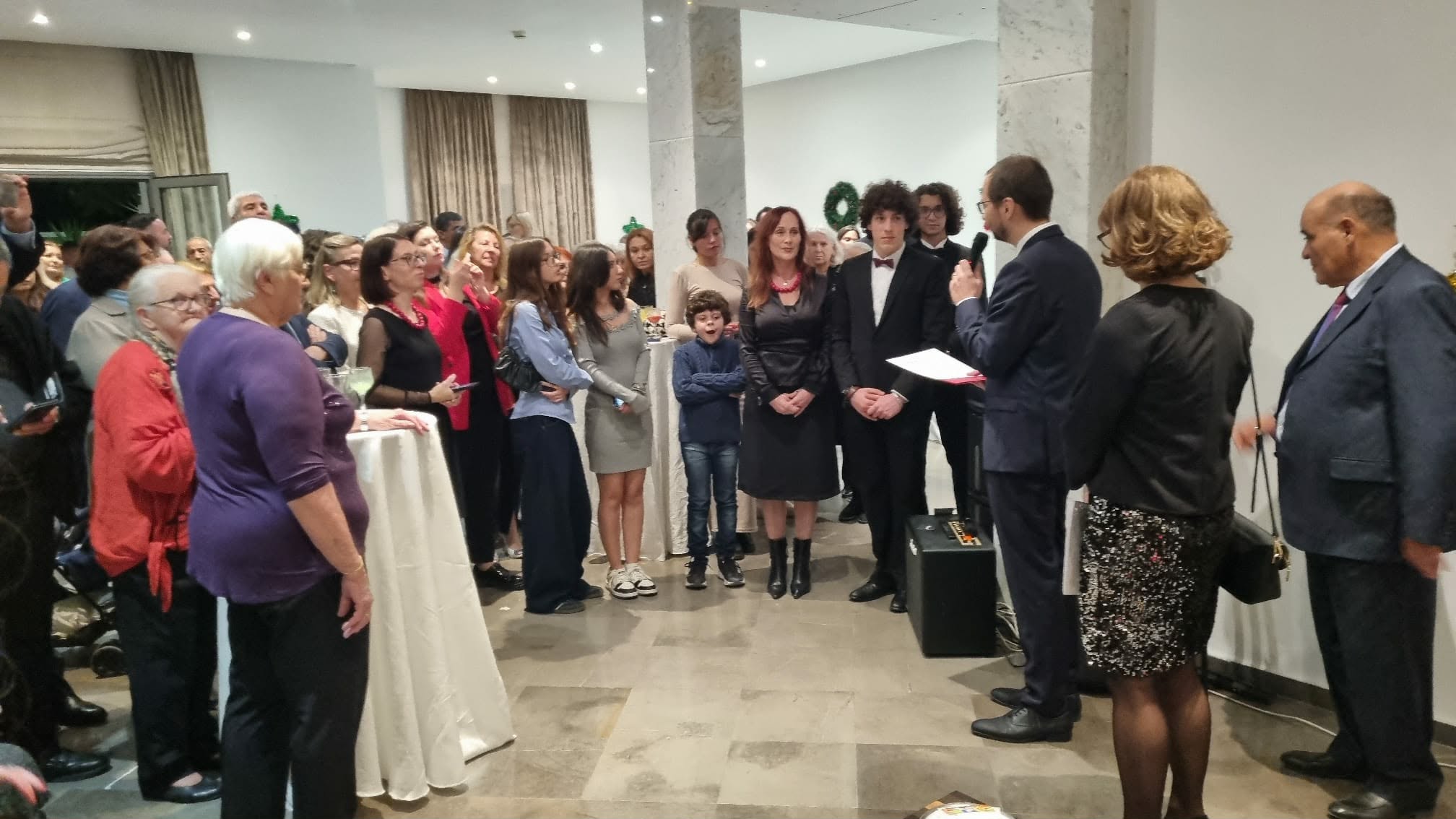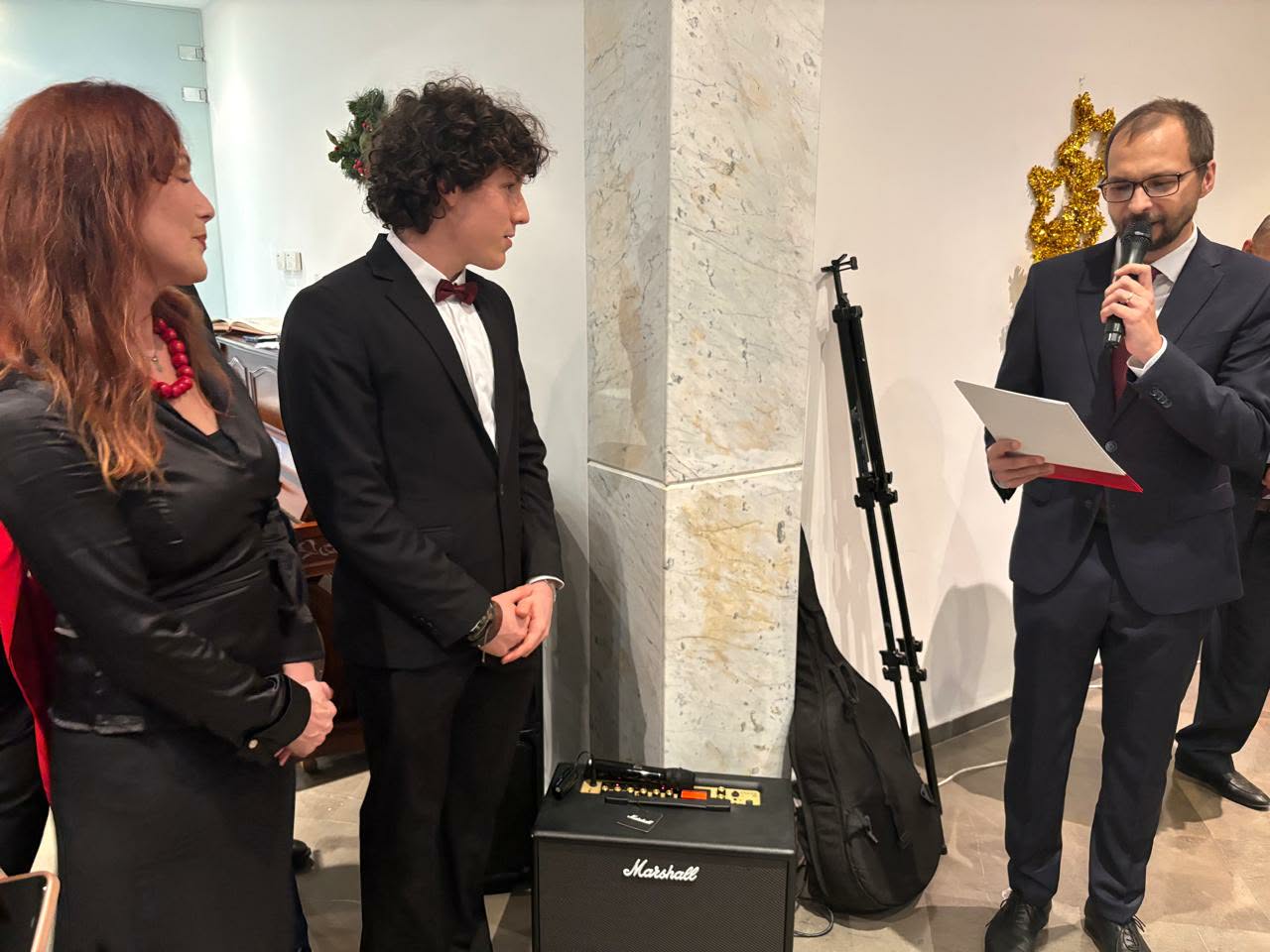 W dalszej części spotkania zebrani goście złożyli sobie noworoczne życzenia dzieląc się opłatkiem, a na zakończenie wybrzmiał bożonarodzeniowy koncert, w akompaniamencie p. Davida Dakhlia oraz p. Katarzyny Kowalskiej, w repertuarze którego nie zabrakło polskich kolęd „ Cicha noc” czy „Przybieżeli do Betlejem”.