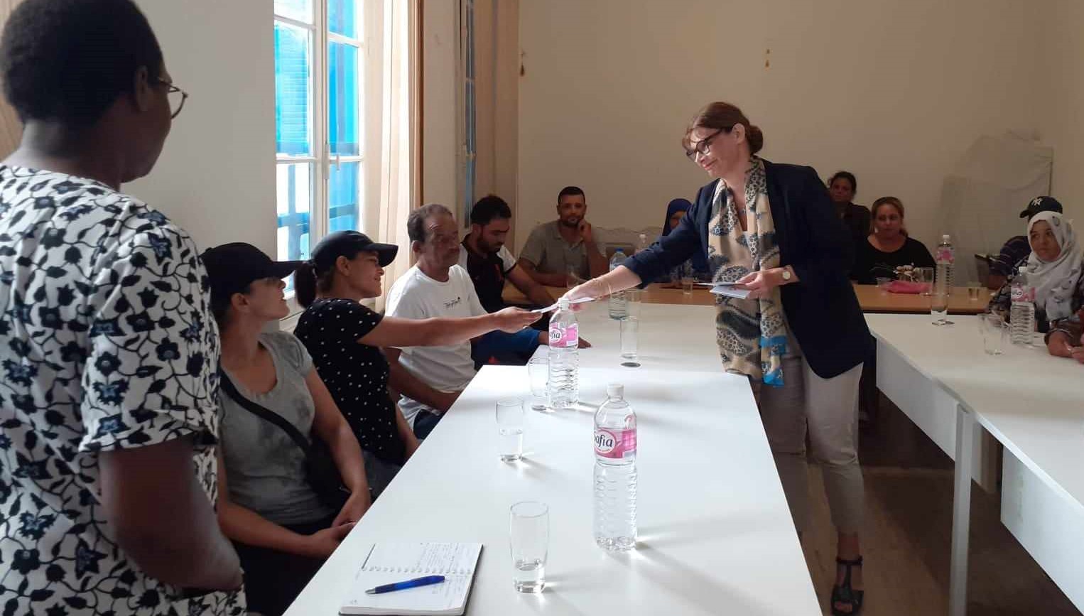 20 września ambasador RP J. Porazińska wraz z pracownikiem ambasady odpowiedzialnym za projekt humanitarny odbyła wizytę monitoringową w Centrum Wsparcia Caritas Tunisie. W spotkaniu uczestniczyła grupa beneficjentów projektu, tj. przedstawiciele kilkunastu rodzin, którzy tego dnia otrzymali bony na zakupy (wartości ok. 100 euro). Łącznie, wsparcie takie otrzyma 100 najbardziej potrzebujących rodzin. Ambasador podczas spotkania przedstawiła priorytety polskiej pomocy w Tunezji oraz w regionie, wskazując na szczególne zaangażowanie naszego kraju na rzecz najsłabszych. Rodziny biorące udział w spotkaniu opowiedziały swoje historie, podziękowały za okazaną solidarność oraz wyraziły nadzieję na dalsze zaangażowanie w inne projekty. Ze swojej strony dyrektor Caritas Tunisie, s. Speciosa, podkreśliła, że szczególnie cieszy się ze współpracy z Polską, licząc równocześnie na następne projekty, zwłaszcza w świetle trudnej sytuacji wielu rodzin.