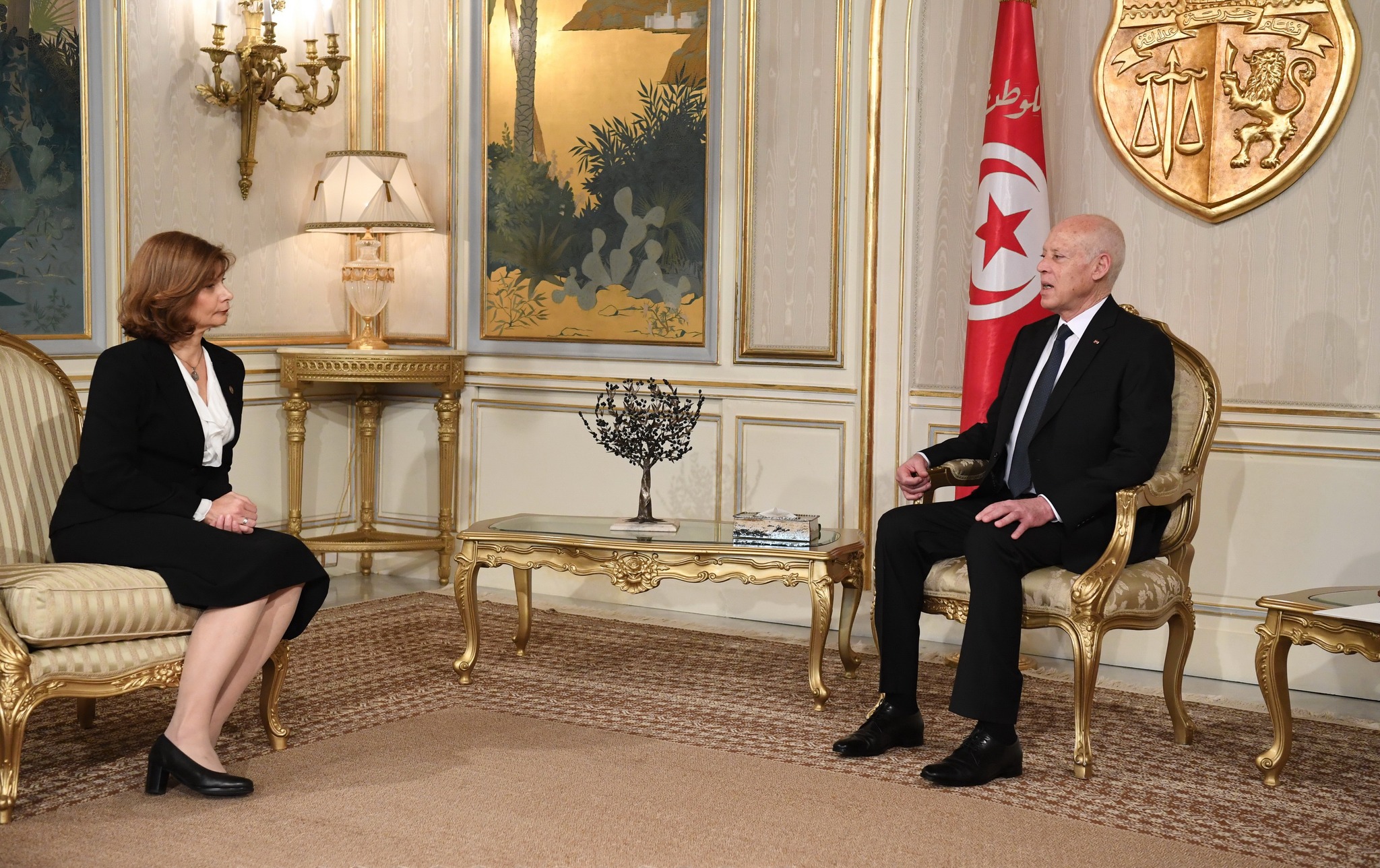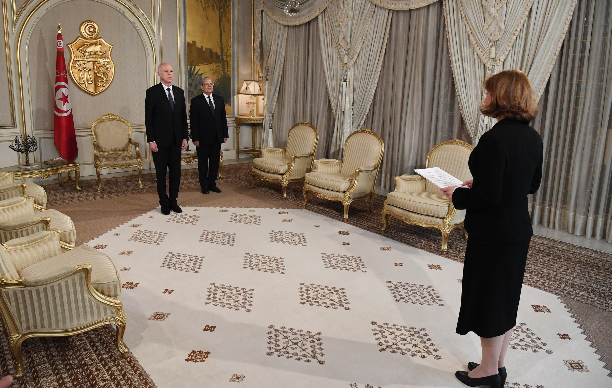 Podczas uroczystej ceremonii, Ambasador RP w Tunezji Justyna Porazińska złożyła listy uwierzytelniające na ręce Prezydenta Republiki Tunezyjskiej Kaïsa Saïeda.