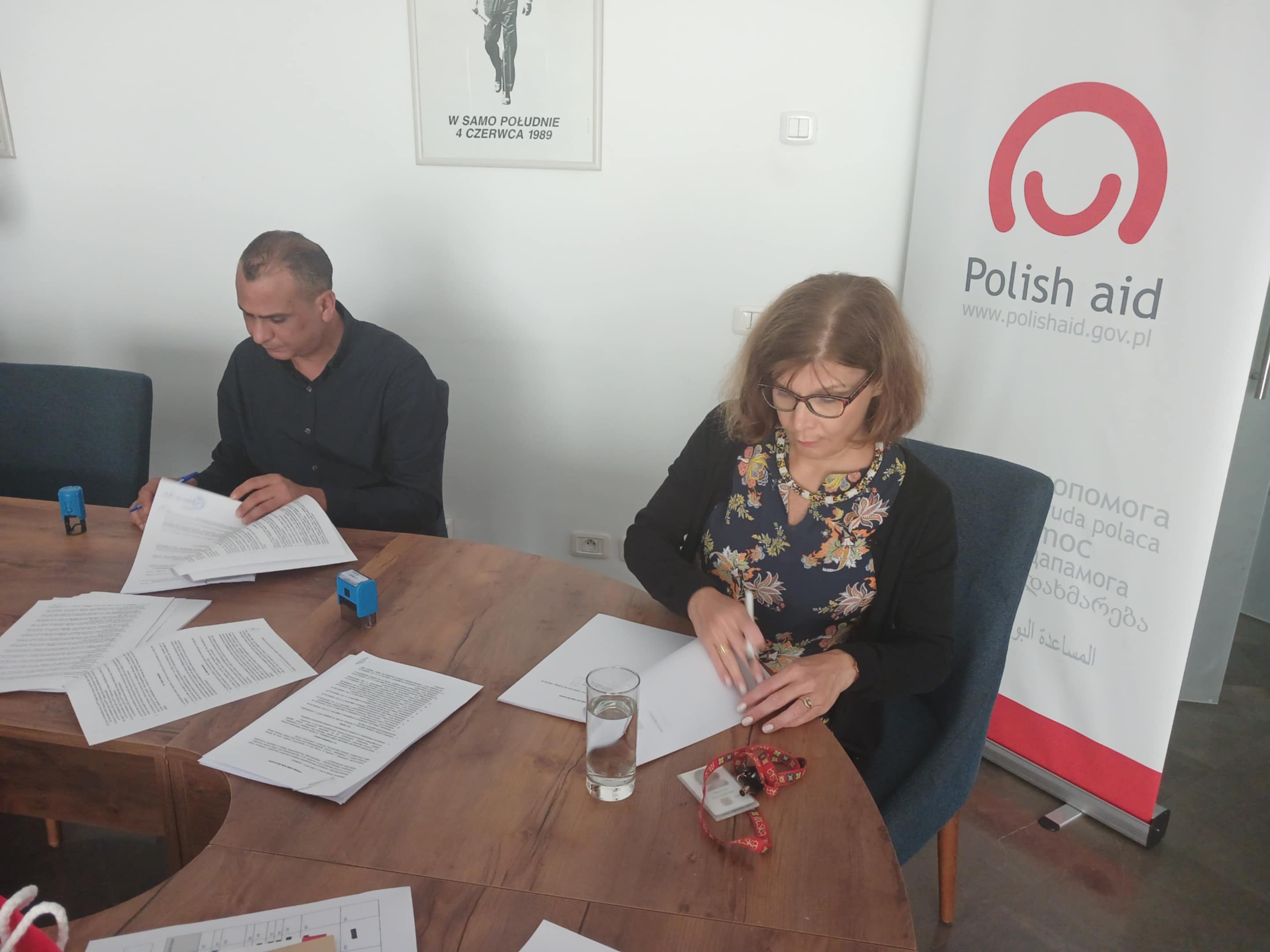La signature du contrat de collaboration entre l’Ambassade de Pologne à Tunis et Association Campagne : Développement Social pour la réalisation du projet d'aide au développement dans le cadre du programme Polish Aid financé par le Ministère des Affaires Etrangères de Pologne.