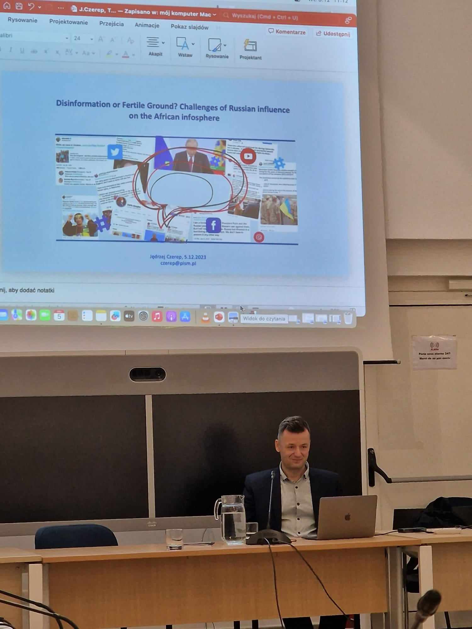 A l'initiative de l'Ambassade de la République Pologne à Tunis, une présentation sur la désinformation russe en Afrique, préparée par un expert polonais, le Dr Jędrzej Czerep de l'Institut polonais des affaires internationales, a eu lieu le 5 décembre 2023.