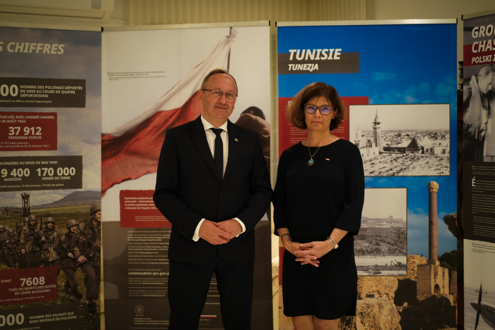 L'ouverture officielle de l'exposition « Chemins de l’espoir. Odyssée de la Liberté » créée par l'Institut de la Mémoire Nationale a eu lieu le 29 octobre 2024 à la résidence de l'ambassadeur de Pologne à Tunis. A part les invités qui avaient participé à la cérémonie de l’inauguration de la plaque au Musée de Mareth, les ambassadeurs de l'OTAN, des pays de l'UE (Grande-Bretagne, Allemagne, Belgique, Bulgarie, Roumanie, Pays-Bas, Italie) et de l’Ukraine, des attachés militaires, ainsi que des représentants du ministère tunisien des Affaires étrangères, y étaient présents. L'exposition « Chemins de l’espoir. Odyssée de la Liberté », montrant le sort difficile des Polonais en temps de guerre, a été enrichie d'affiches consacrées à la Tunisie pendant la Seconde Guerre mondiale, à l'opération Torch et aux opérations des pilotes polonais dans le ciel tunisien.