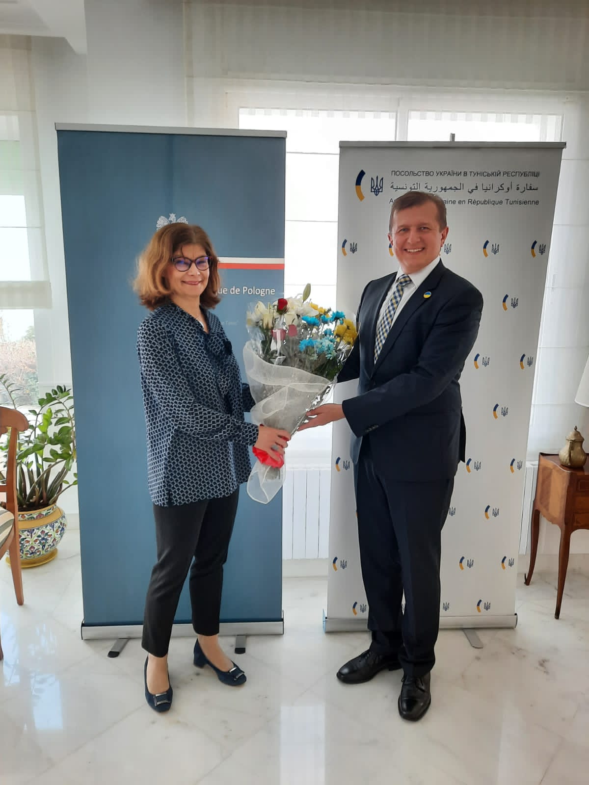 La réunion amicale consacrée au sort la culture polonaise et ukrainienne pendant la guerre, a eu lieu le 15 mars 2023 à la Résidence de Pologne. La rencontre s'est déroulée en présence des ambassadeurs de Pologne et d'Ukraine, des journalistes tunisiens et des acteurs des théâtres polonais et ukrainiens présents en Tunisie.