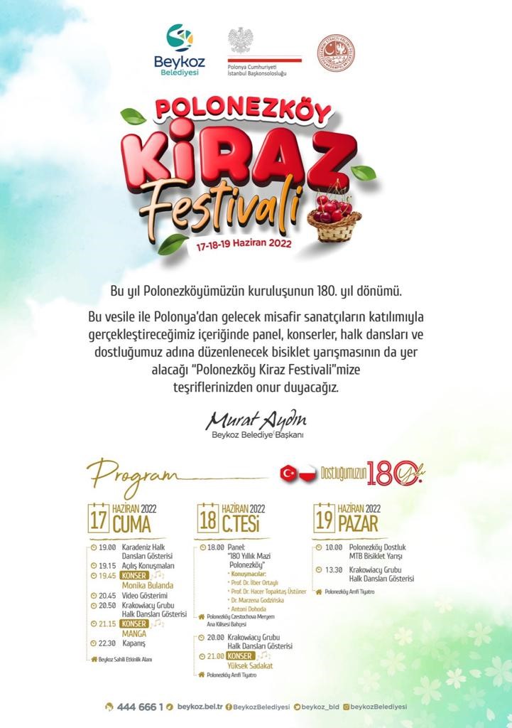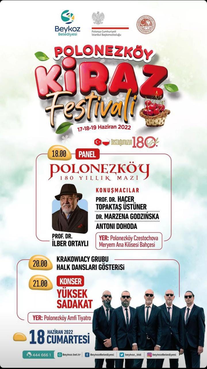 W 2022 roku obchodzimy 180. rocznicę założenia polskiej osady w Turcji - Adampola / Polonezköy. Z tej okazji dzięki zaangażowaniu Gminy Beykoz na której terytorium znajduje się Adampol, Konsulatu Generalnego RP w Stambule oraz samorządu Polonezköy udało się zrealizować ideę Festiwalu Czereśniowego (po turecku Kiraz Festivali).