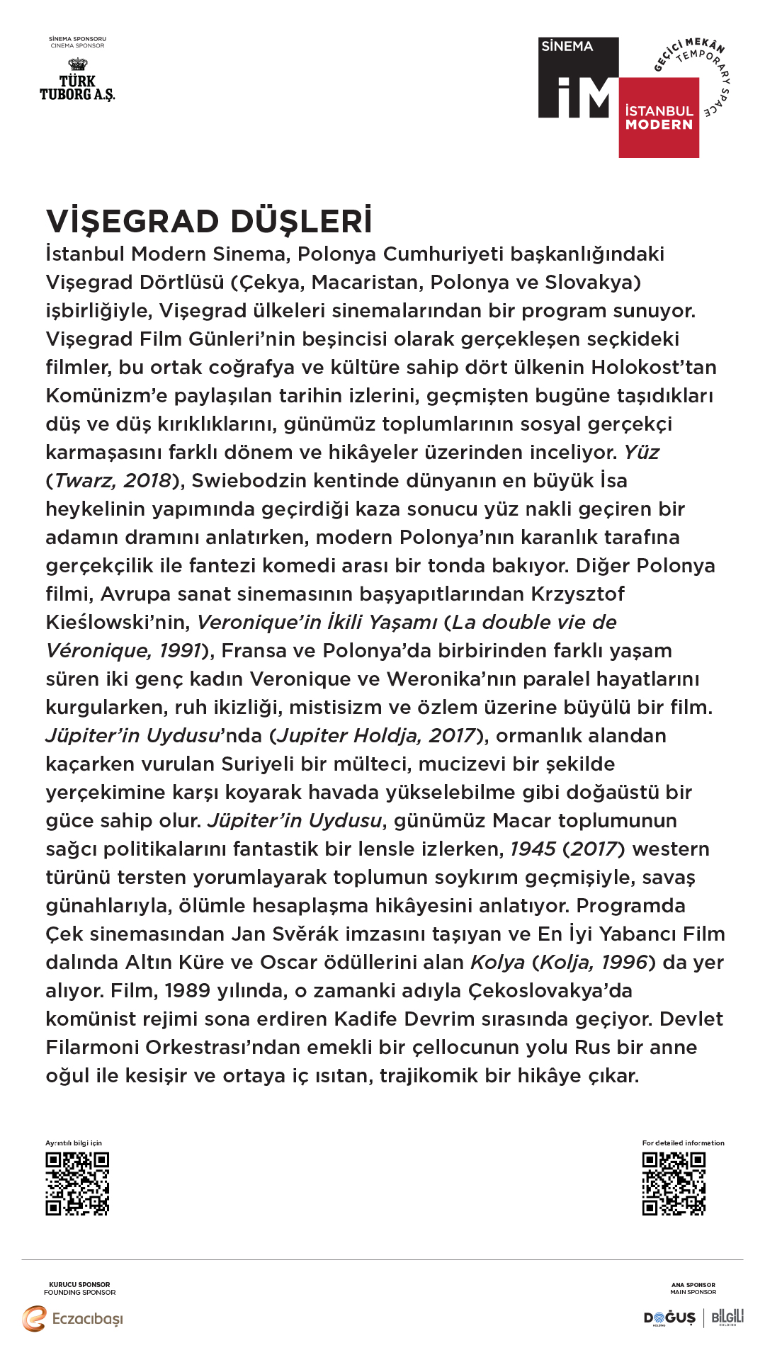 W dniach 22 października – 1 listopada w prestiżowym Muzeum Sztuki Nowoczesnej Istanbul Modern odbędzie się Festiwal Filmowy Grupy Wyszehradzkiej pt. „Vişegrad Düşleri/Visegrad Dreams”.