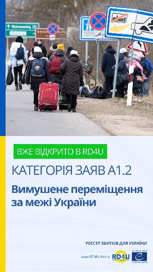 Нова категорія A1.2 (Вимушене переміщення за межі України) дає можливість людям, які були змушені залишити свій дім і виїхати за кордон або, котрі не змогли повернутися до України,внаслідок,агресії Російської Федерації – подавати свої заяви на компенсацію. Особи, які отримали тимчасовий захист або ж міжнародний захист у Польщі чи в іншій державі внаслідок повномасштабного вторгнення – розглядатимуться як такі, що були вимушено переміщені за межі України, для цілей цієї категорії. Тим, хто офіційно не оформлював жодного статусу, потрібно буде надати інші докази вимушеного переміщення.