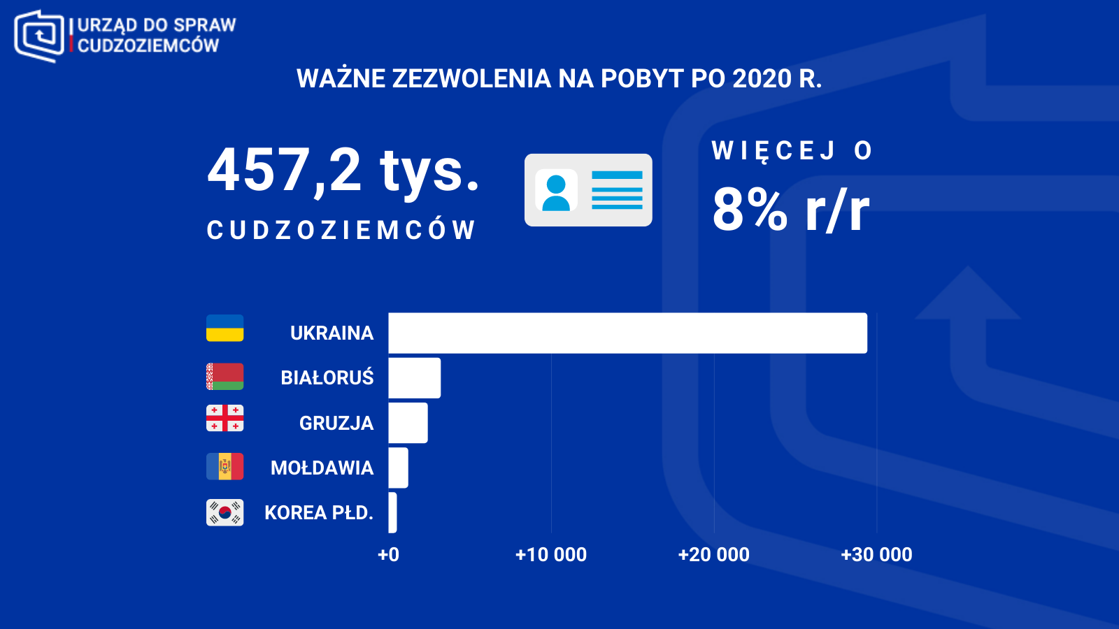 Ważne zezwolenia na pobyt w Polsce posiada obecnie prawie 460 tys. cudzoziemców. W ubiegłym roku liczba ta wzrosła o nieco ponad 34 tys. osób. Sytuacja epidemiologiczna i związane z nią ograniczenia w podróżowaniu zachęcały obcokrajowców do przedłużania pobytu w kraju. Dotyczyło to zwłaszcza obywateli Ukrainy i Białorusi, którzy wcześniej w większym stopniu korzystali z możliwości migracji tymczasowych.