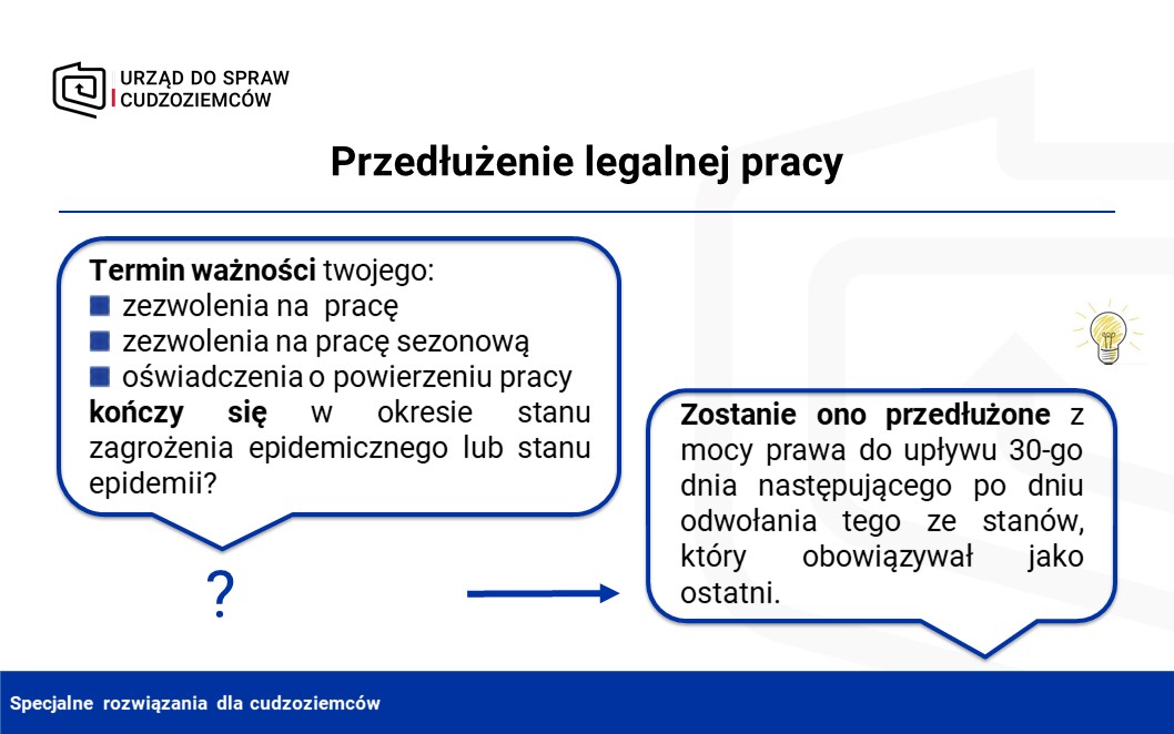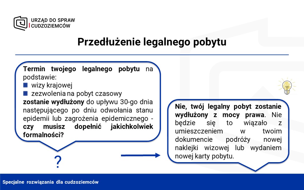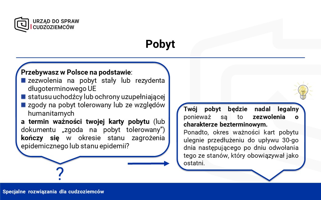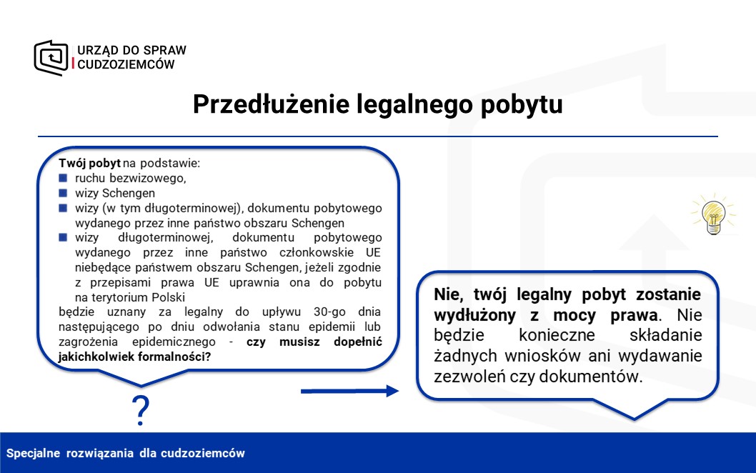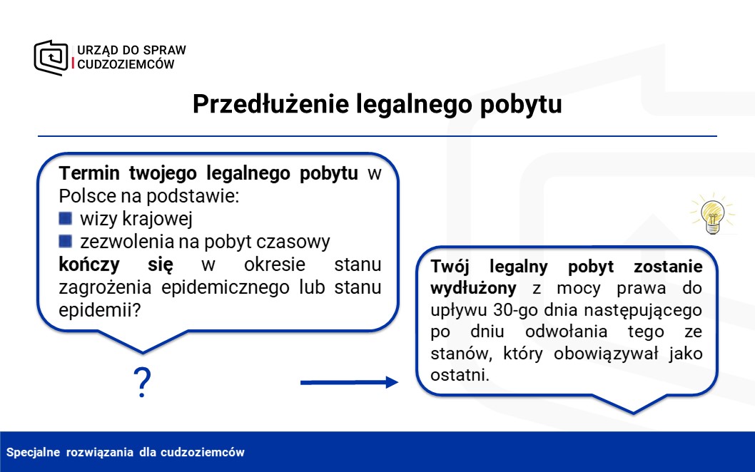 - legalny pobyt cudzoziemców, który skończyłby się w okresie stanu zagrożenia epidemicznego lub stanu epidemii,