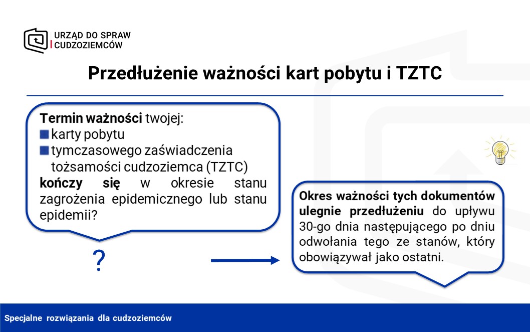 Przedłużenie z mocy prawa okresów ważności kart pobytu, tymczasowych zaświadczeń tożsamości cudzoziemca, polskich dokumentów tożsamości cudzoziemca oraz dokumentów „zgoda na pobyt tolerowany”