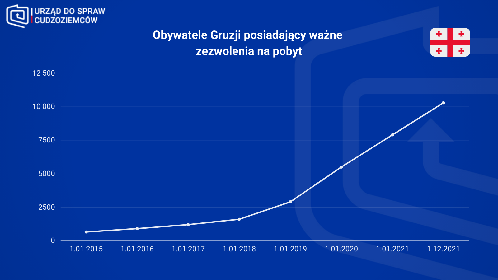 Wzrost liczby Gruzinów osiedlających się w Polsce zauważalny jest od wprowadzenia ruchu bezwizowego w 2017 r. Wówczas znacząco zwiększyła się liczba składanych wniosków o wydanie zezwoleń na pobyt, a trend ten nadal się utrzymuje.
