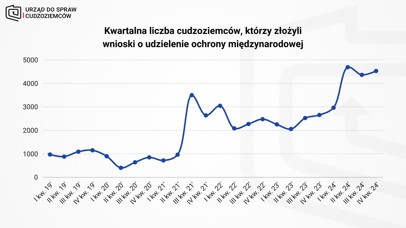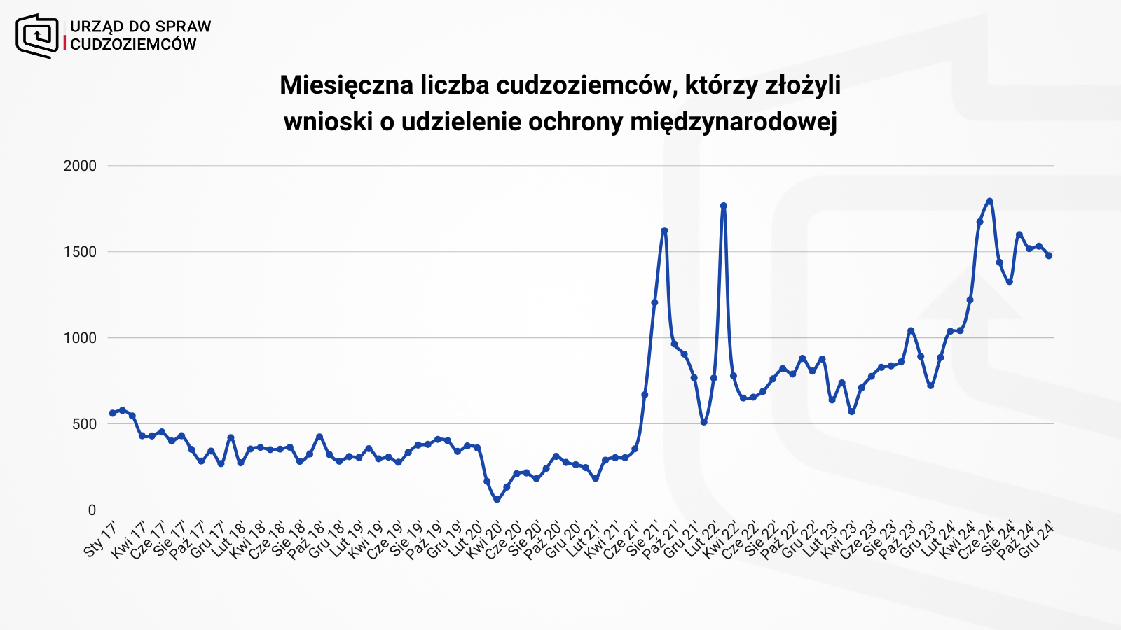 W ubiegłym roku wnioski o udzielenie ochrony międzynarodowej w Polsce złożyło 17 tys. cudzoziemców. Dwie najliczniejsze grupy wnioskodawców stanowili obywatele Ukrainy oraz Białorusi. W 2024 r. Urząd do Spraw Cudzoziemców wydał decyzje wobec 12 tys. osób.