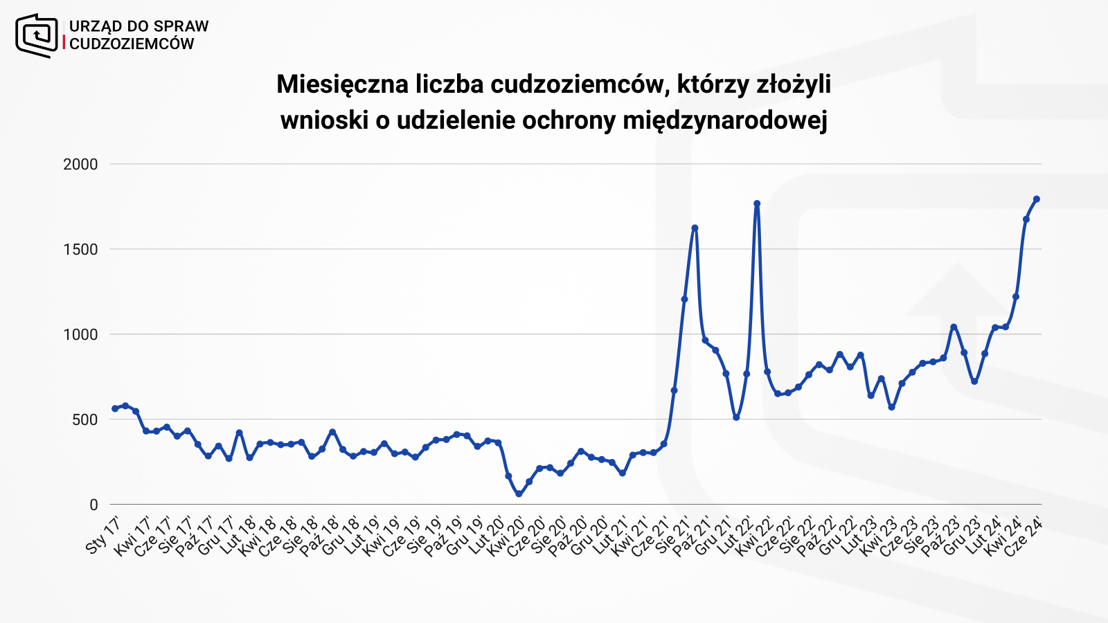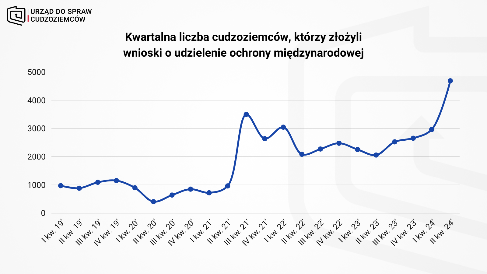 Do końca czerwca 2024 r. wnioski o udzielenie ochrony międzynarodowej w Polsce złożyło 7,7 tys. cudzoziemców. Najliczniejsze grupy wnioskodawców stanowili obywatele Ukrainy i Białorusi.