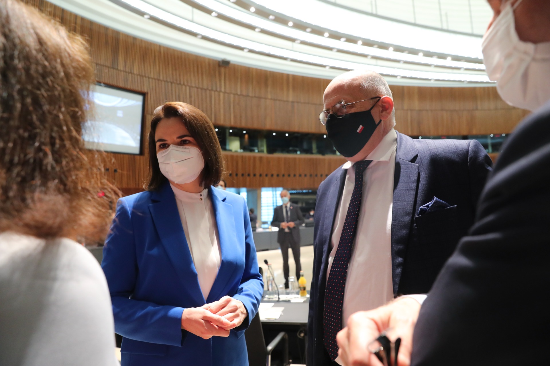Podczas dyskusji nt. Białorusi minister Rau podziękował za publikację przez Komisję Europejską planu wsparcia gospodarczego dla demokratycznej Białorusi, który jest ofertą wsparcia UE dla społeczeństwa białoruskiego w przypadku wprowadzenia zmian demokratycznych. Wyraził zadowolenie z wdrożenia decyzji majowej Rady Europejskiej podjętej w odpowiedzi na wymuszone lądowanie w Mińsku samolotu Ryanair. Szef polskiej dyplomacji podkreślił znaczenie przyjęcia przez Radę kolejnego pakietu sankcji wobec osób i podmiotów odpowiedzialnych za represje i uprowadzenie Ramana Pratasiewicza, oraz szybkiego postępu prac nad ukierunkowanymi sektorowymi sankcjami ekonomicznymi: „Sankcje są odwracalne: ich możliwe zniesienie zależy od dalszych działań Mińska w tym m.in. zaprzestania represji, wypuszczenia więźniów oraz rozpoczęcia dialogu ze społeczeństwem, który powinien prowadzić do wolnych i sprawiedliwych wyborów” – zaznaczył.
