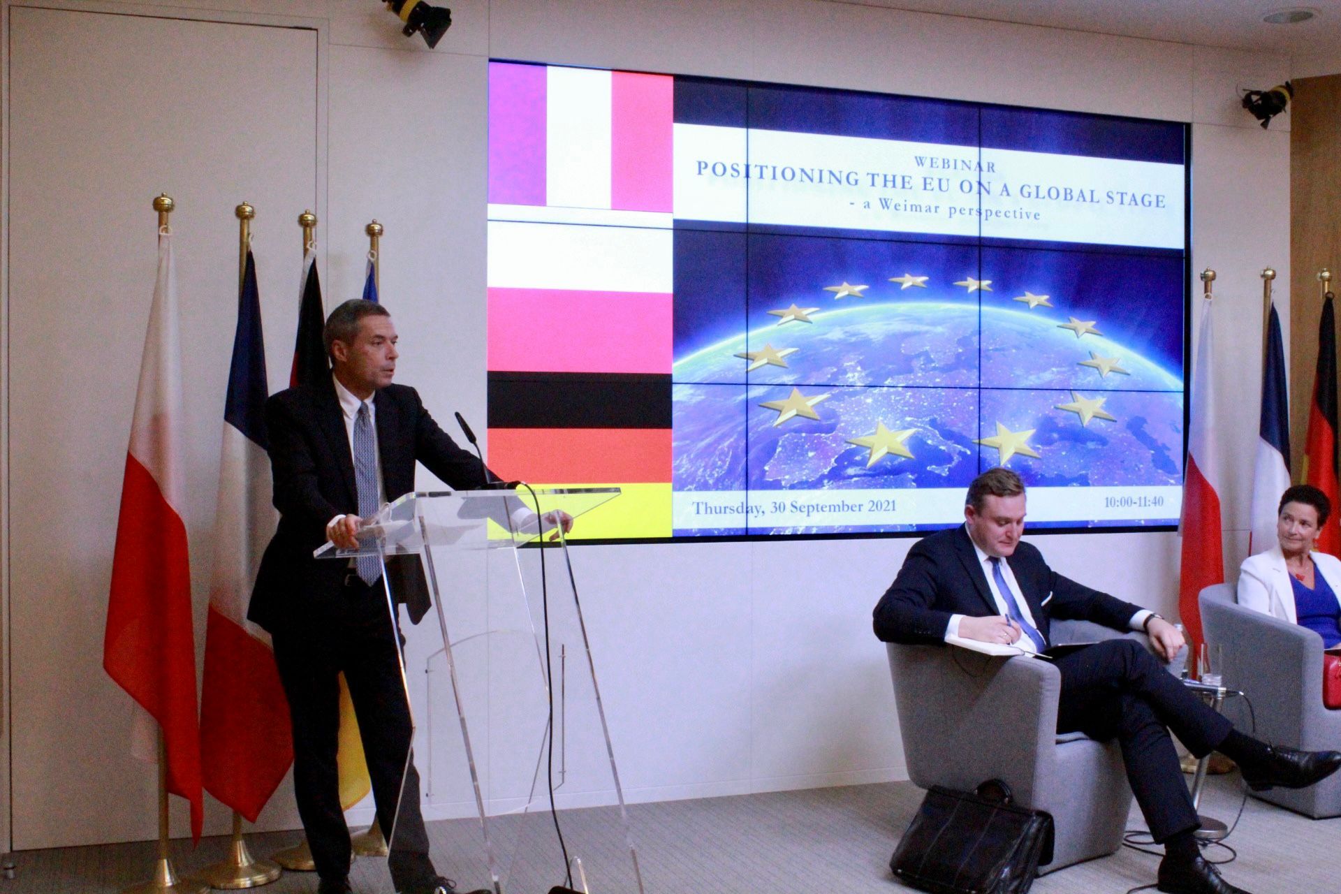Głównym tematem webinaru była rola Unii Europejskiej na scenie globalnej z perspektywy Polski, Francji i Niemiec. W wydarzeniu udział wzięli również reprezentanci wpływowych europejskich think-tanków: Janis Emmanoulidis, Dyrektor ds. Studiów, Centrum Polityki Europejskiej, Genevieve Pons, Dyrektor Generalny, Wiceprezes Jacques Delors oraz Łukasz Jurczyszyn, Dyrektor brukselskiego biura Polskiego Instytutu Spraw Międzynarodowych (PISM).