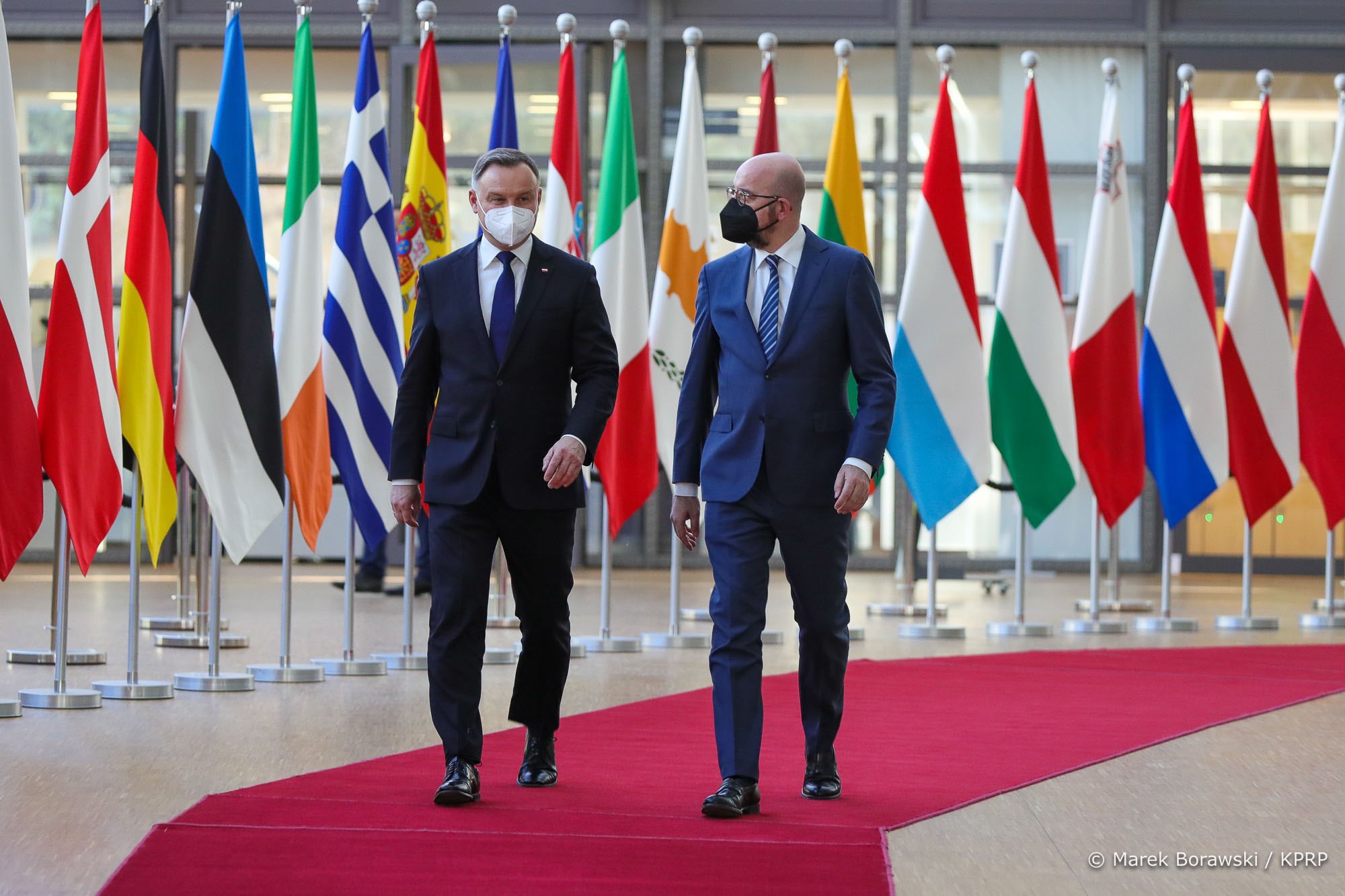 Kolejnym punktem wizyty prezydenckiej było spotkanie z przewodniczącym Rady Europejskiej Charlesem Michelem. „Zgodziliśmy się przede wszystkim, że to czego potrzebujemy to jedność europejska, zarówno w Unii Europejskiej jak i w Sojuszu Północnoatlantyckim. Po pierwsze powinniśmy działać wspólnie, w porozumieniu co do każdego działania, które podejmujemy”- mówił Prezydent Andrzej Duda po spotkaniu z przewodniczącym. „Ci, którzy prowadzą z nami różnego rodzaju dyskusje, jak i ci, którzy tworzą napięcia narodowe muszą widzieć naszą jedność, bo tylko tą drogą jesteśmy w stanie obronić pokój i prawo międzynarodowe” – dodał.