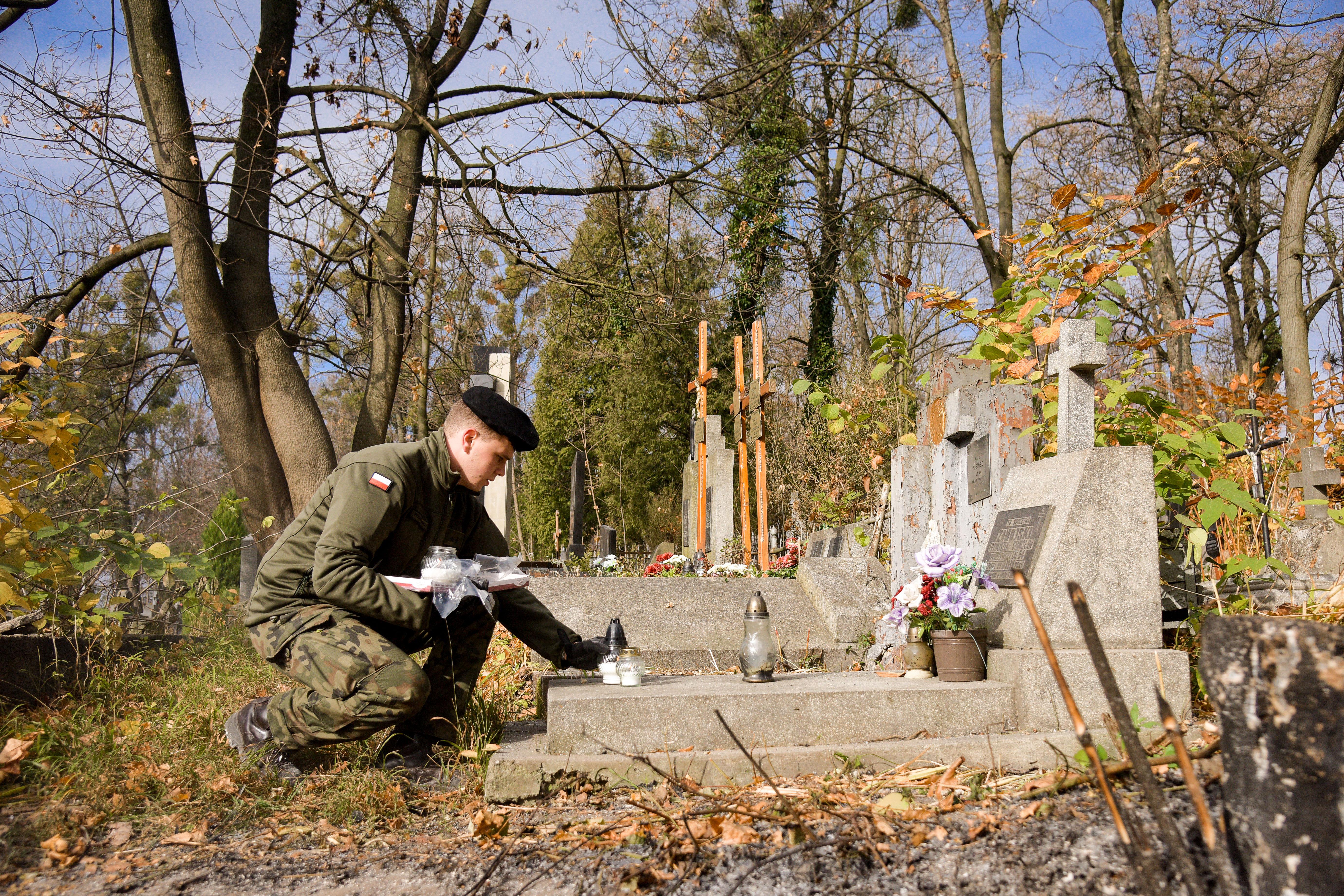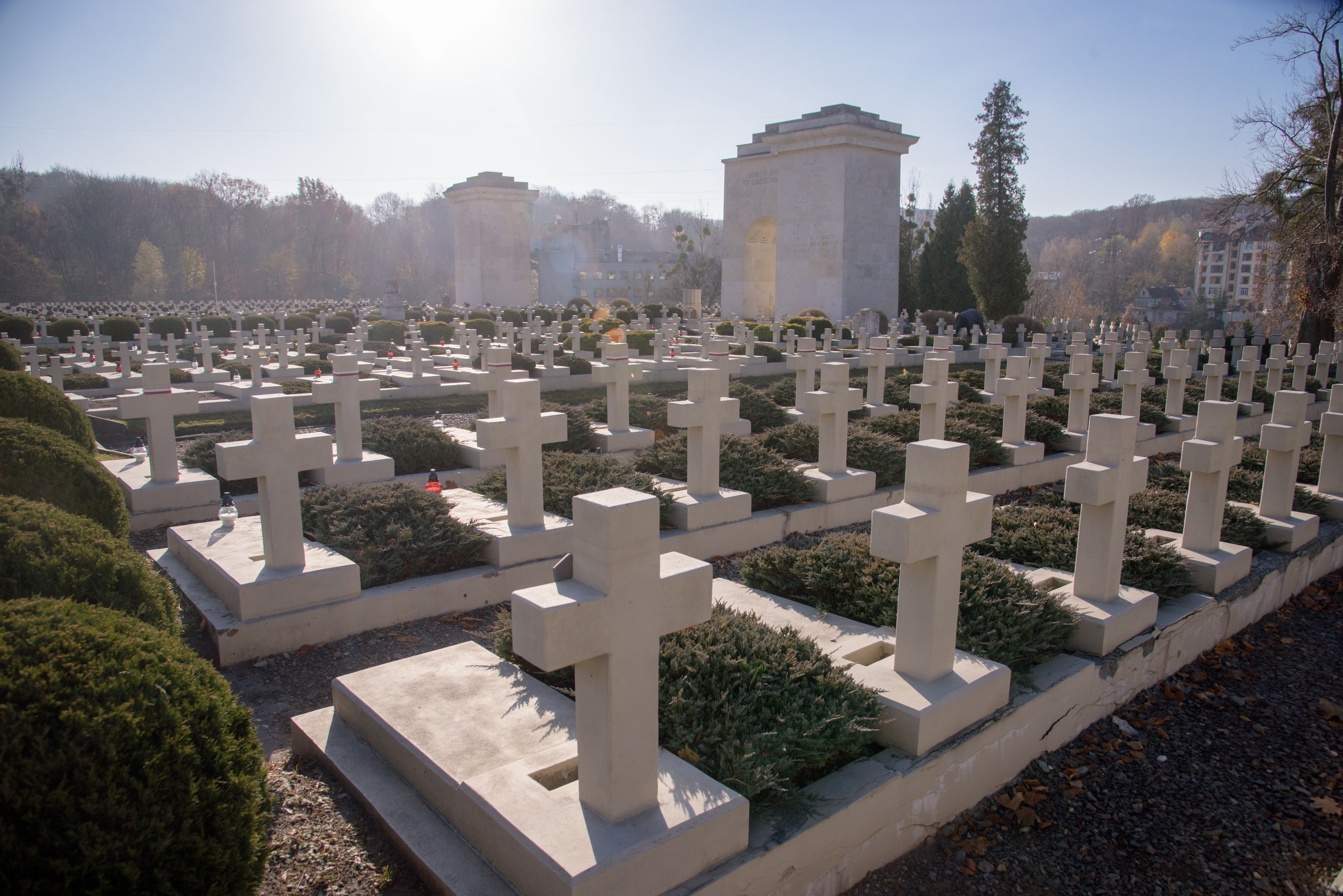 У День усіх святих на польських могилах на Личаківському цвинтарі у Львові з самого ранку запалюють біло-червоні свічки, а увінчує день урочиста Служба Божа на кладовищі захисників Львова.