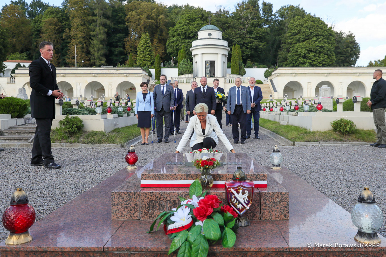 Після відвідин лікарень Агата Корнгаузер-Дуда відвідала Цвинтар захисників Львова, де поклала квіти до могили Невідомого солдата, до пам'ятника Української Галицької армії та до могил загиблих під час теперішньої війни.