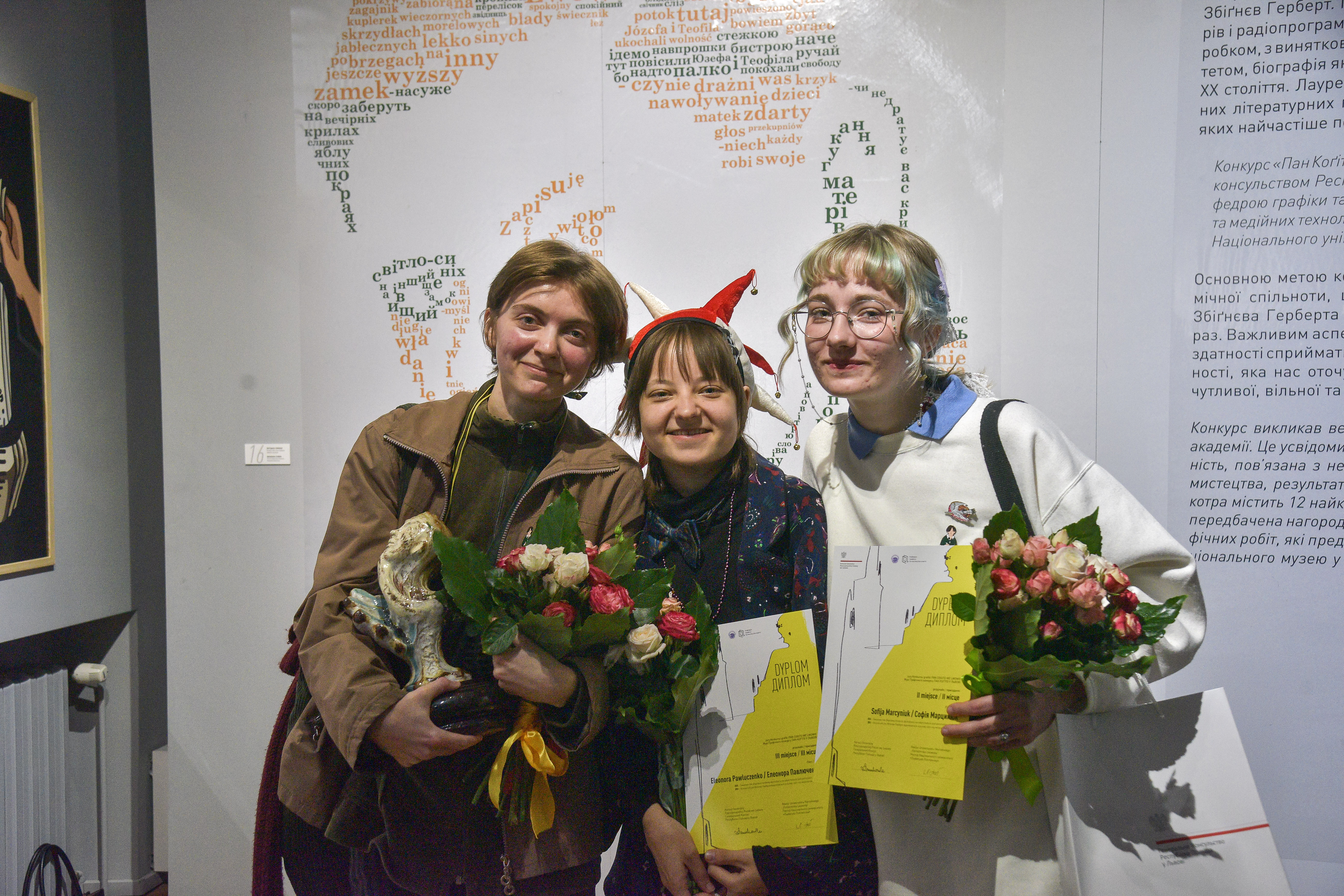 Кількома днями раніше - 25 жовтня - у Національному музеї у Львові імені Андрея Шептицького відбулося урочисте закриття виставки робіт учасників графічного конкурсу «Пан Коґіто у Львові». Учасниками конкурсу були студенти кафедри графіки та мистецтва книги Інституту поліграфії та медійних технологій Національного університету «Львівська політехніка» (Академія друкарства)». Проєкт викликав неабияке зацікавлення серед молоді - на конкурс було подано кілька десятків робіт, що ілюструють вибрані вірші Герберта. Журі відзначило дванадцять з них та нагородило чотири графічні роботи. Перемогу в конкурсі здобула Анастасія Поліщук. Її інтерпретація вірша «Спроба опису» також завоювала серця глядачів, які відкритим голосуванням вирішили присудити їй приз глядацьких симпатій. Друге місце посіла Софія Мартинюк, а третє - Елеонора Павлюченко. Надзвичайно цінними були враження, якими переможці мистецького змагання поділилися з глядачами під час церемонії нагородження. Вірші Герберта читали сучасні мешканці улюбленого міста Герберта, поезія набула нових значень і справила глибоке враження на молодих художників. Переможниці конкурсу отримали цінні призи, профінансовані Консульством, а пані Поліщук додатково отримала статуетку - погруддя Збіґнєва Герберта - у майстерній роботі відомого львівського скульптора Віктора Проданчука. Своєрідним підсумком цього проєкту стало ювілейне «Портфоліо Герберта», що містить перевидання дванадцяти нагороджених і відзначених творів зі спеціально підготовленою Анджеєм Франашеком передмовою. Герберт, завдяки чутливому перечитуванню його віршів молодим поколінням Львова, повернувся до рідного міста.