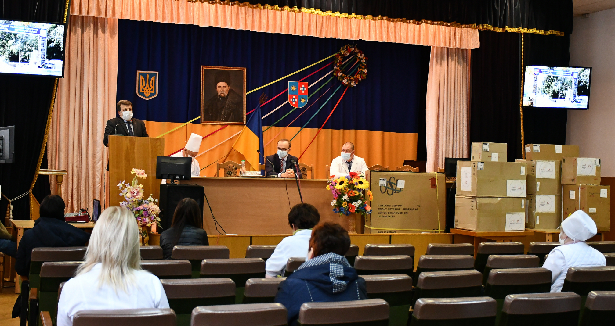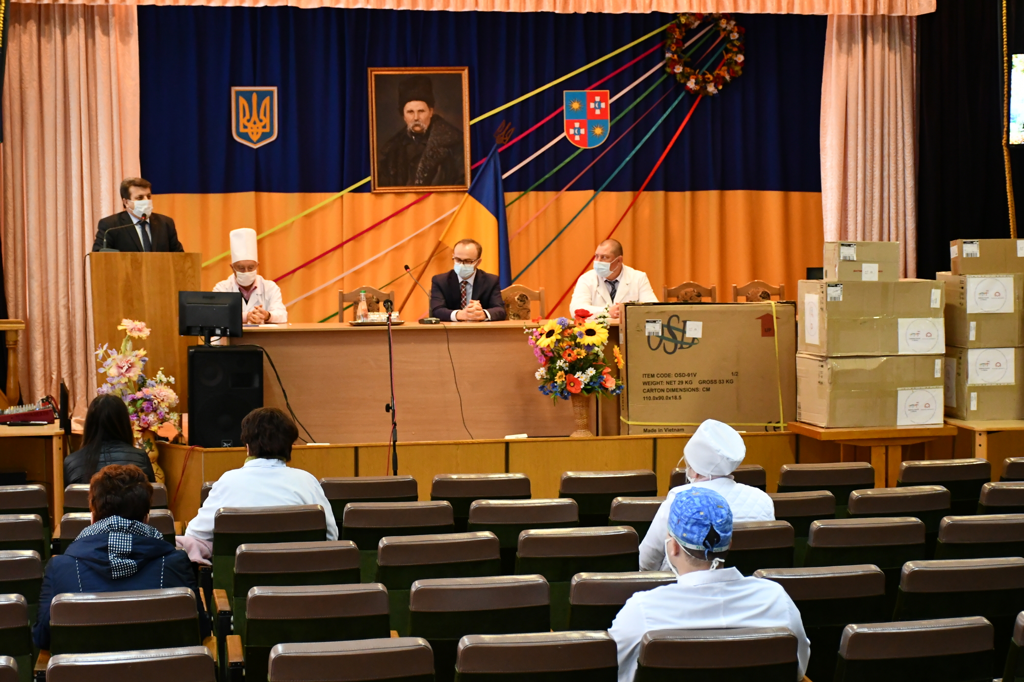При передачі медичних засобів був присутній медичний персонал госпіталю на чолі з директором закладу Валерієм Бабійчуком, а також голова обласної Ради Анатолій Олійник.