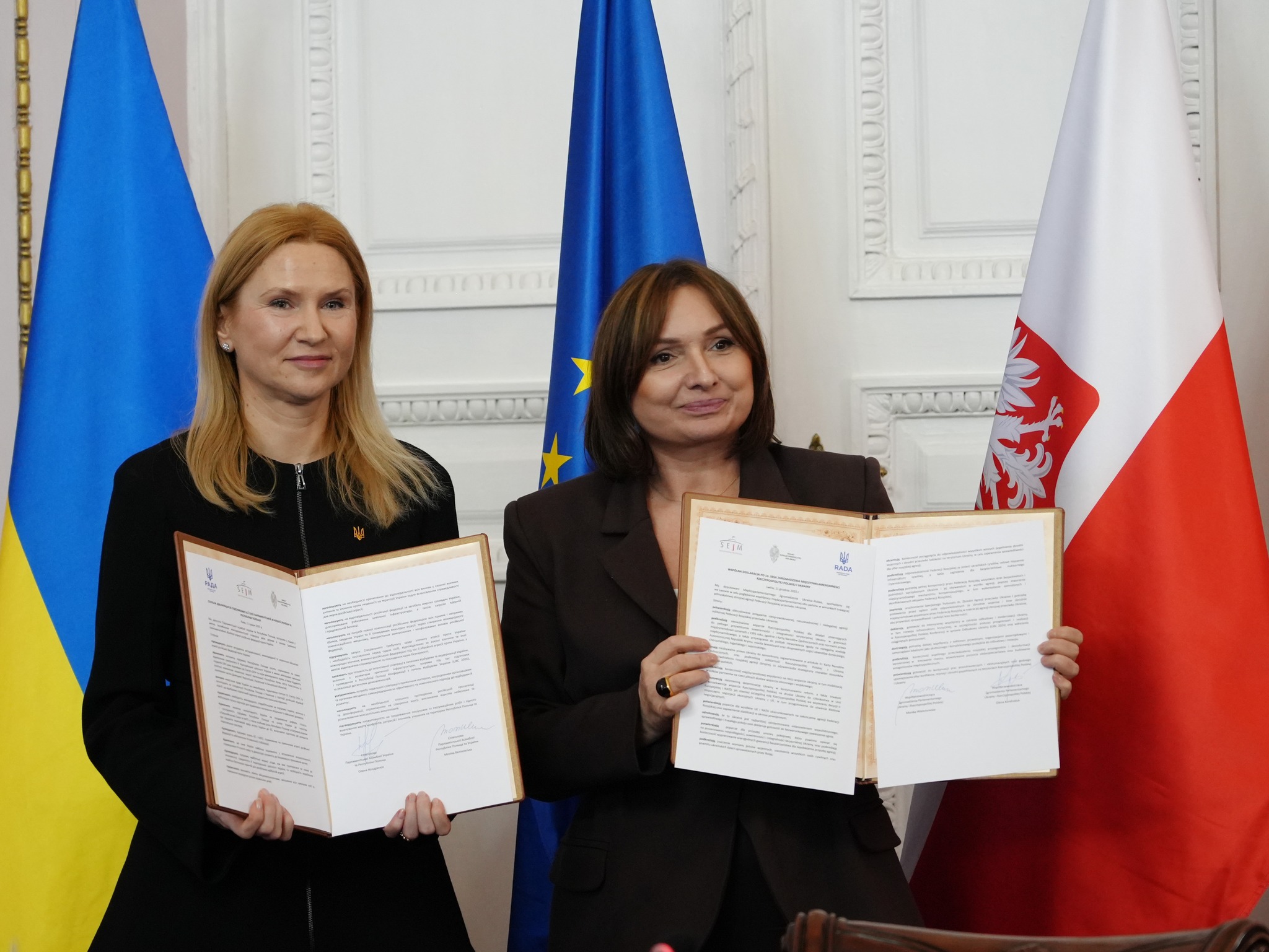 Na zakończenie obrad wicemarszałek Sejmu RP Monika Wielichowska oraz wiceprzewodnicząca Rady Najwyższej Ukrainy Ołena Kondratiuk podpisały wspólną polsko-ukraińską deklarację.