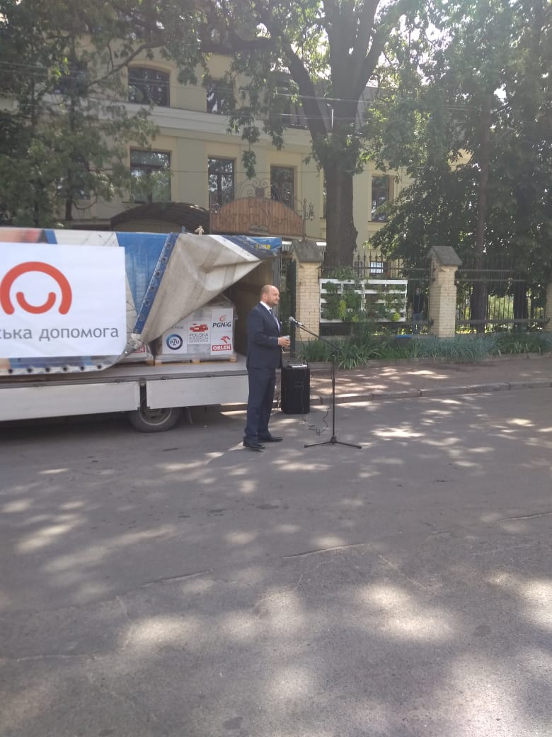 14 lipca w Kijowie, 15 lipca w Kaniowie i 16 lipca w Fastowie dyplomaci Ambasady RP na Ukrainie uczestniczyli w przekazaniu medycznego sprzętu ochrony indywidualnej, zakupionego przez polskie przedsiębiorstwa, lokalnym szpitalom.