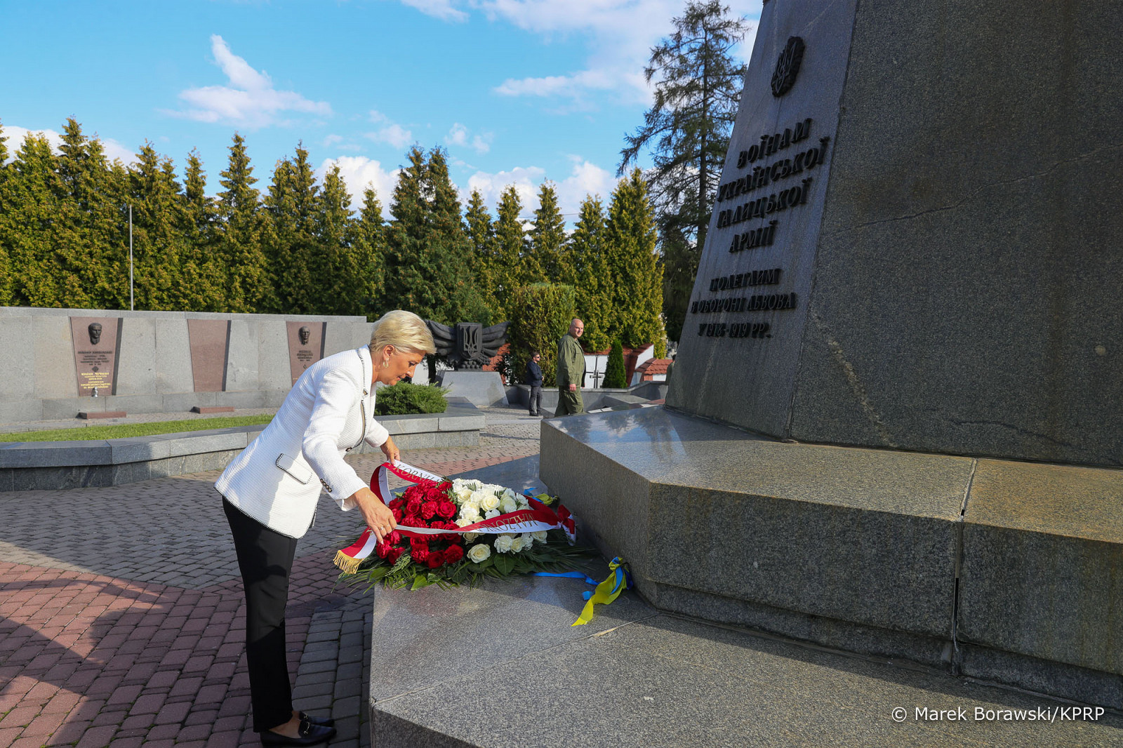 Po wizycie w szpitalach Agata Kornhauser-Duda odwiedziła Cmentarz Orląt Lwowskich, gdzie złożyła kwiaty na płycie głównej Grobu Nieznanego Żołnierza, przy pomniku Ukraińskiej Armii Galicyjskiej oraz na grobach poległych w czasie trwającej wojny.