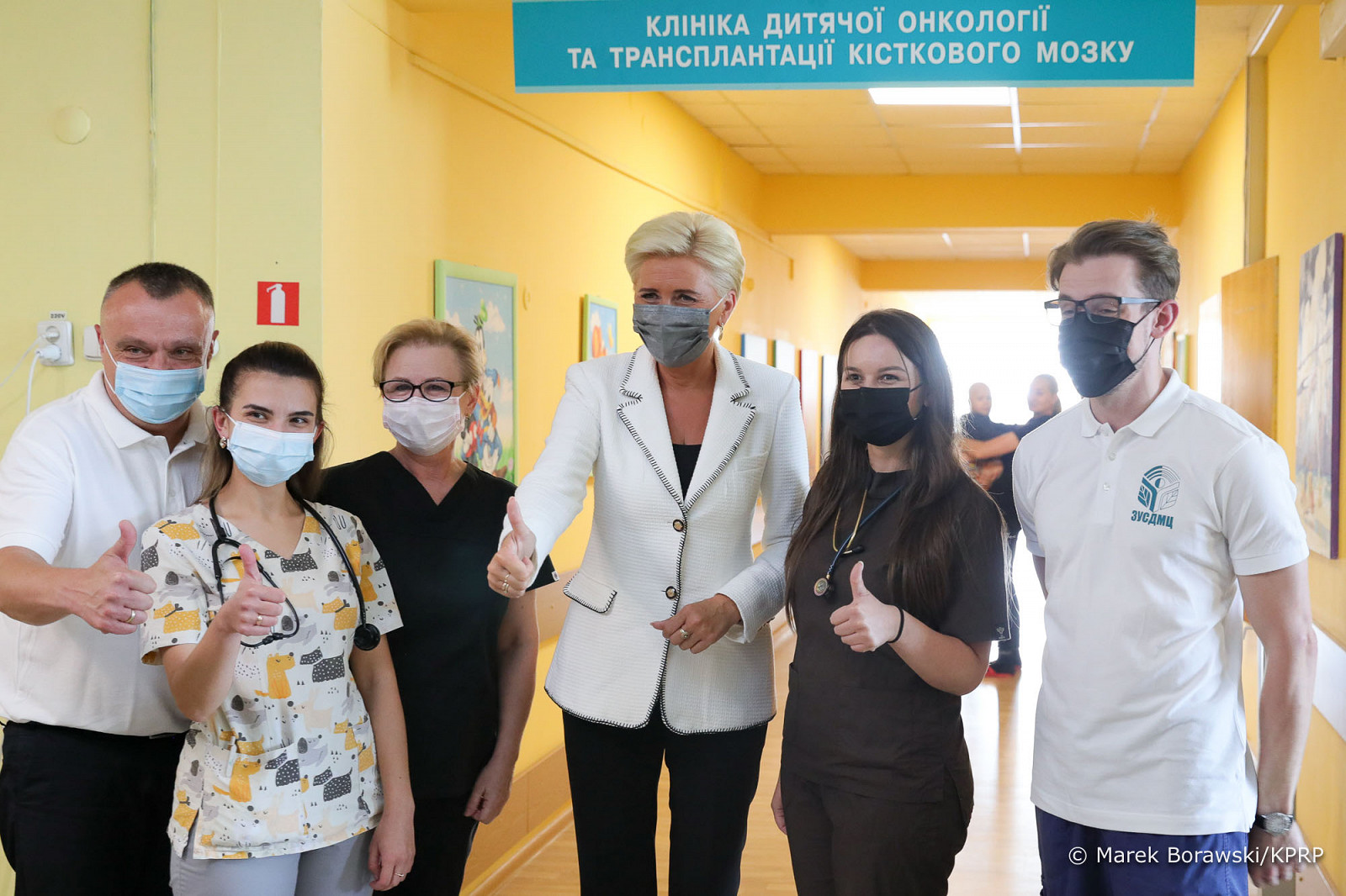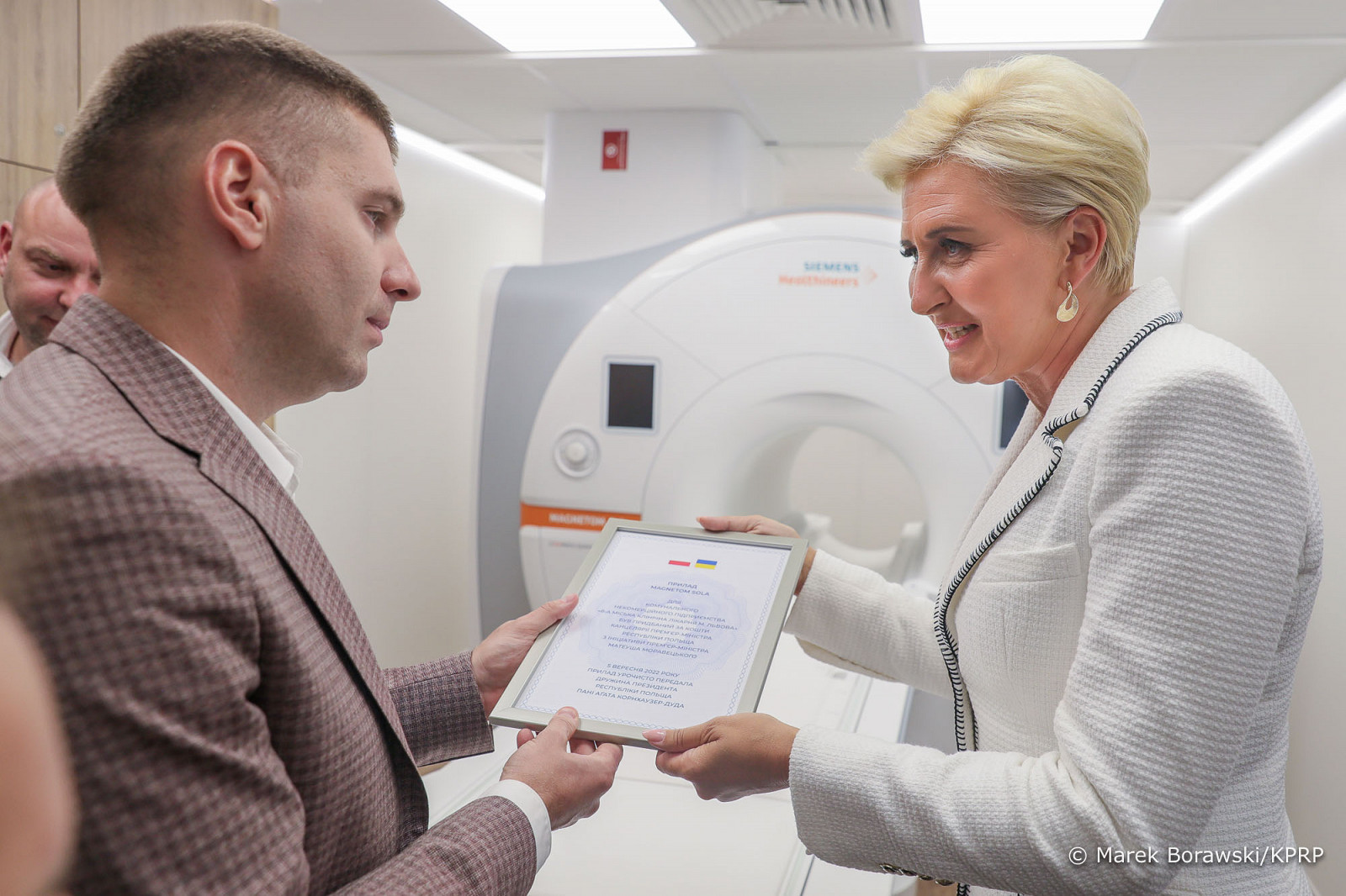 Następnie Małżonka Prezydenta odwiedziła Zachodnioukraińskie Specjalistyczne Centrum Medyczne dla Dzieci. Agata Kornhauser–Duda spotkała się tam z małymi pacjentami oddziału onkologicznego, z którego już w pierwszych dniach marca, przy wsparciu Pierwszej Damy RP, ewakuowano najciężej chorych. Po wizycie na oddziale Agata Kornhauser–Duda spotkała się z dyrekcją i personelem szpitala, z którymi rozmawiała o aktualnej sytuacji i potrzebach placówki. Mówiono o jej naukowej współpracy z warszawskim Instytutem „Pomnik – Centrum Zdrowia Dziecka” oraz możliwości odbywania w nim i innych zakładach opieki zdrowotnej w naszym kraju staży przez ukraińskich lekarzy i pielęgniarki. Medycy opowiedzieli również o współpracy z Uniwersyteckim Szpitalem Dziecięcym w Lublinie w zakresie diagnostyki, leczenia i rehabilitacji rdzeniowego zaniku mięśni (SMA), zakupu sprzętu diagnostycznego oraz leków. Potem Małżonka Prezydenta udała się do lwowskiego Szpitala św. Łukasza, który otrzymał rezonans magnetyczny zakupiony ze środków Kancelarii Prezesa Rady Ministrów z osobistej inicjatywy Premiera Mateusza Morawieckiego. W obecności Pierwszej Damy odbyło się oficjalne przekazanie sprzętu. Jego zakup pozwoli na ratowanie życia i zdrowia osób poszkodowanych w wyniku agresji Rosji na Ukrainę.
