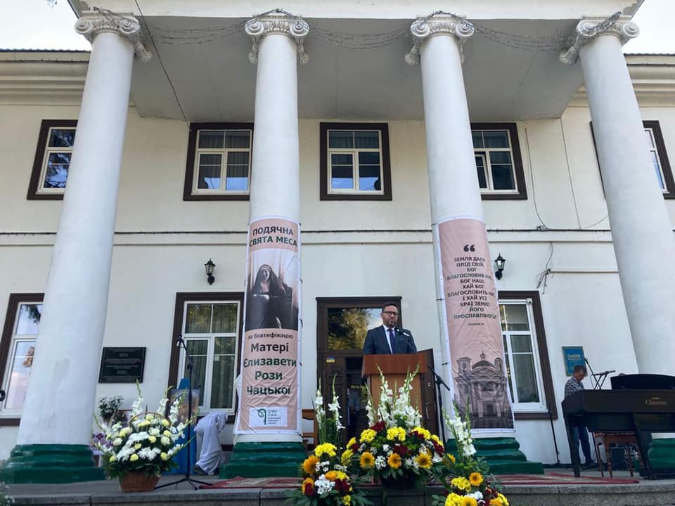 Amb. Cichocki podkreślił w wystąpieniu wpływ dziedzictwa dzisiejszych ziem Ukrainy na współczesną kulturę polską i europejską: "Biała Cerkiew, Fastów, Żytomierz, Kijów na przestrzeni stuleci rodziły bogactwo, z którego korzystamy w Polsce i na świecie. Wyniesiona dziś na ołtarze Świętego Kościoła Rzymsko-Katolickiego Matka Elżbieta Róża Czacka nierozerwalnie spaja Ukraińców, Polaków i cywilizację świata zachodniego".