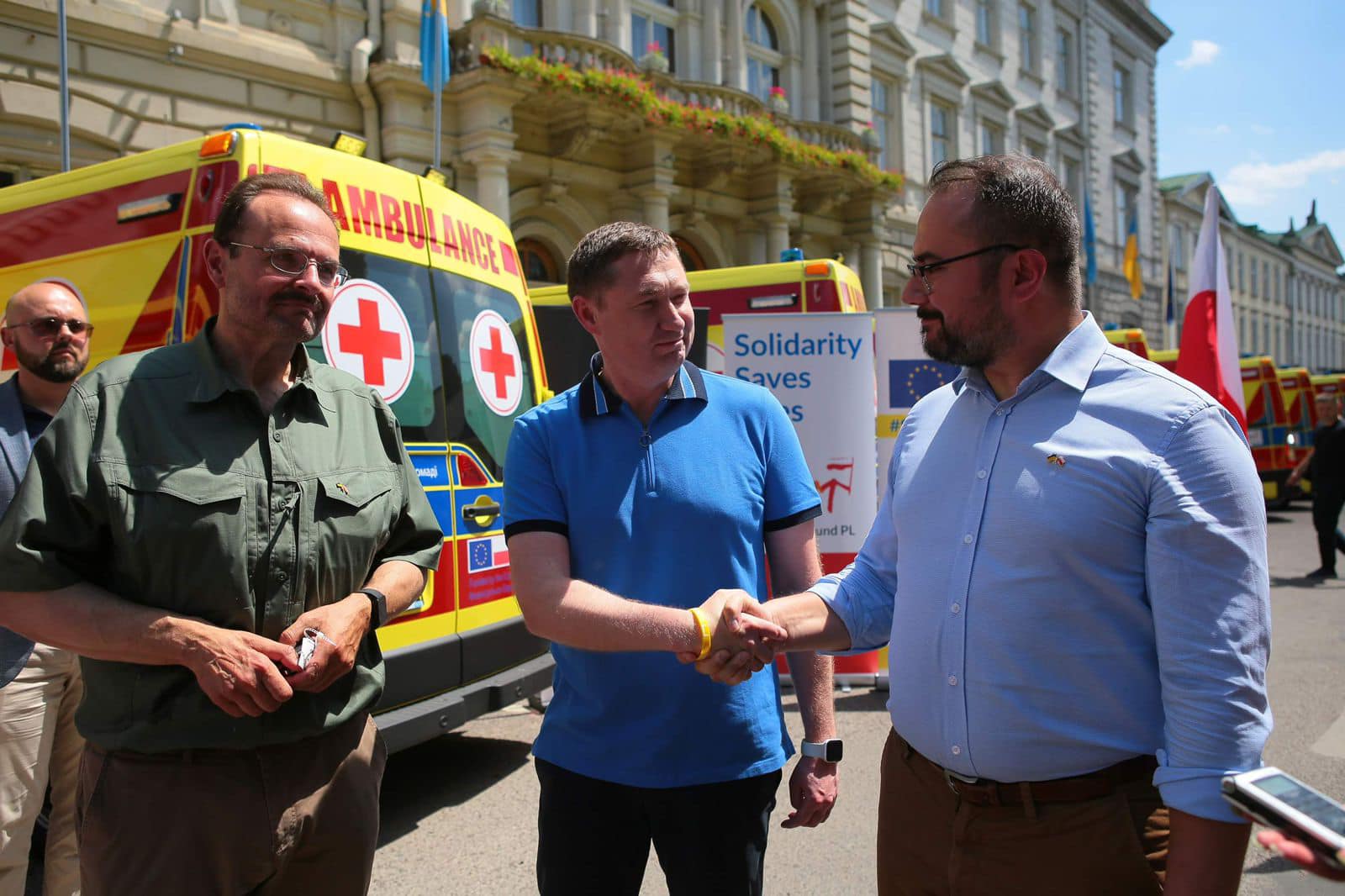 Wiceminister spraw zagranicznych Paweł Jabłoński we Lwowie uczestniczył w przekazaniu ukraińskim szpitalom 25 nowych ambulansów zakupionych w ramach projektu realizowanego przez Fundację Solidarności Międzynarodowej i Bank Gospodarstwa Krajowego.