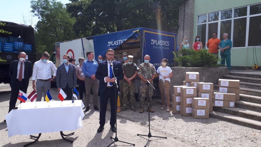 W Słowiańsku z kolei amb. Cichocki przekazał Szpitalowi Dziecięcemu środki dezynfekcyjne i ochrony osobistej, które zakupiły polskie firmy obecne na Ukrainie: PGNiG, PKN Orlen, PZU, PKO BP, a także Ministerstwo Zdrowia i Polska Fundacja Narodowa: 4 tys. litrów płynu dezynfekcyjnego, 500 gogli ochronnych, 3 tys. maseczek oraz 5 tys. jednorazowych rękawiczek ochronnych.