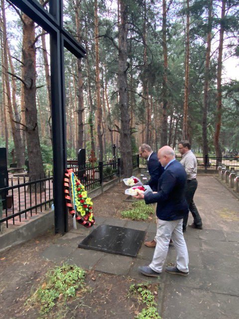 Wiceminister Marcin Przydacz odwiedził także w trakcie wizyty Starobielsk, gdzie złożył kwiaty pod tablicą upamiętniającą polskich oficerów przetrzymywanych przez NKWD w 1940 r., a także miejsce spoczynku części z nich, na lokalnym cmentarzu.