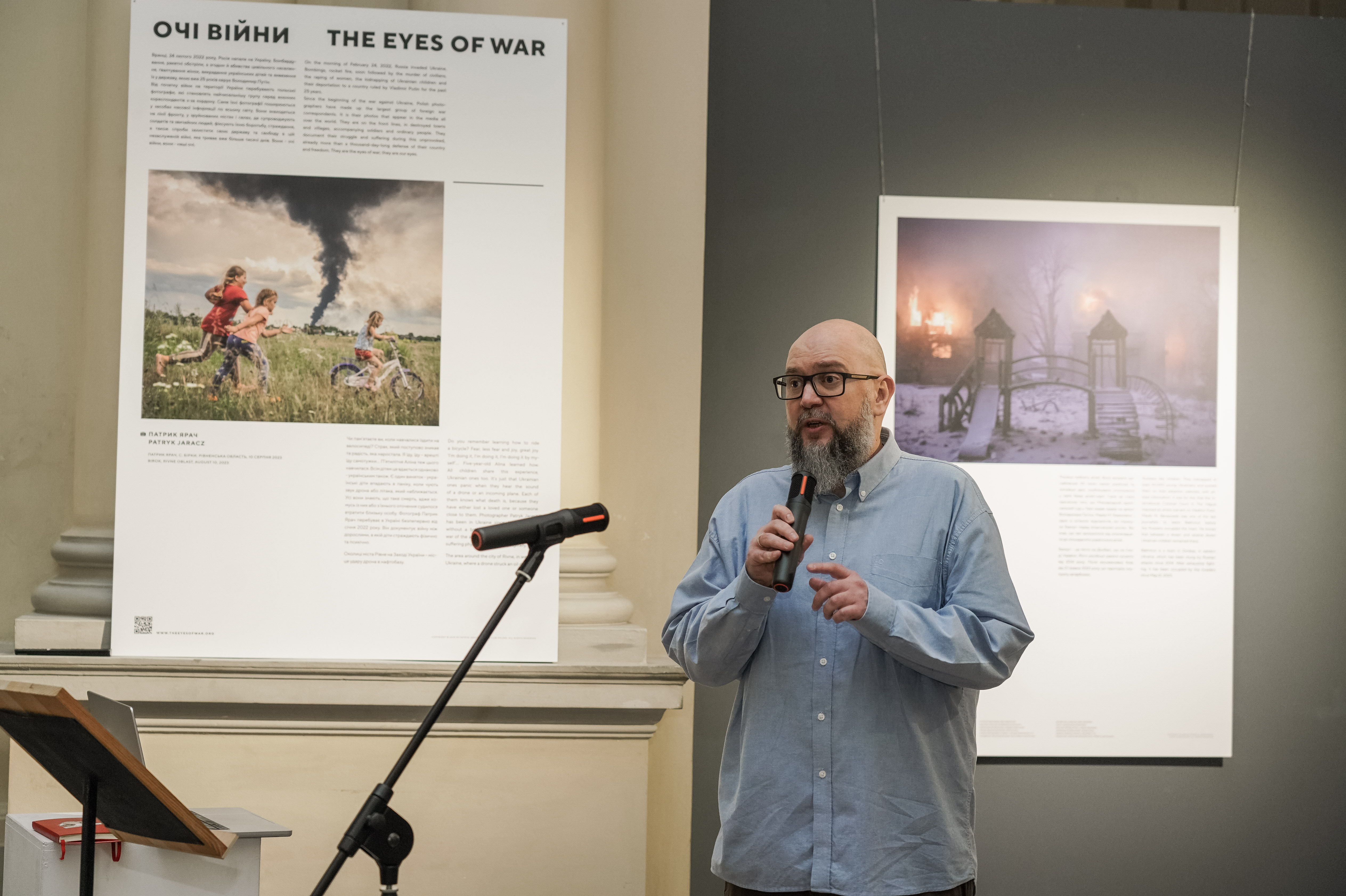 Zdjęcia pokazane w Muzeum Narodowym są autorstwa wybitnych polskich fotografików, nagradzanych na najważniejszych konkursach fotograficznych, takich jak World Press Photo i Pictures of The Year, m.in. Wojciecha Grzędzińskiego, Marka Berezowskiego, Tomasza Lazara i wielu innych pracujących na wojnie w Ukrainie. Polscy dziennikarze stanowią najliczniejszą grupę wśród zagranicznych korespondentów wojennych, są autorami tysięcy zdjęć. Dzięki ich pracy wojna w Ukrainie jest tak widoczna dla ludzi nawet w odległych zakątkach świata. W otwarciu lwowskiej wystawy wziął osobisty udział Patryk Jaracz, który, prezentując publiczności swoje fotografie, powiedział, że jedną z najgorszych rzeczy, to przyzwyczaić się do wojny, przywyknąć do faktu, że jej koszmar wciąż trwa. Patryk Jaracz porzucił pracę w dobrze prosperującej firmie, by utrwalać wydarzenia w najgorętszych przyfrontowych miejscach, by dokumentować realia życia i walki podczas rosyjskiej inwazji.