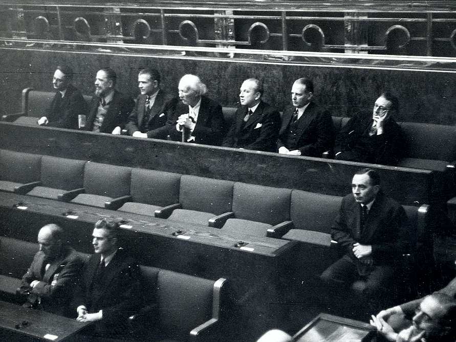 The creation of a new international organization necessarily led to the dissolution of the League of Nations. The last 21st Assembly of the League of Nations was held in April, 1946. It was attended by Jerzy Putrament, who as a delegate of TRJN and its envoy to Switzerland at the time. Two days earlier, the United Nations had formally taken over the League of Nation’s assets. A protocol to that effect was signed in Bern by the last LN Secretary General Seán Lester and Włodzimierz Moderow, a Polish citizen and former official of the Polish government in London, who was a UN Secretariat employee at the time and later was appointed Director of the European Office of the UN at Geneva.