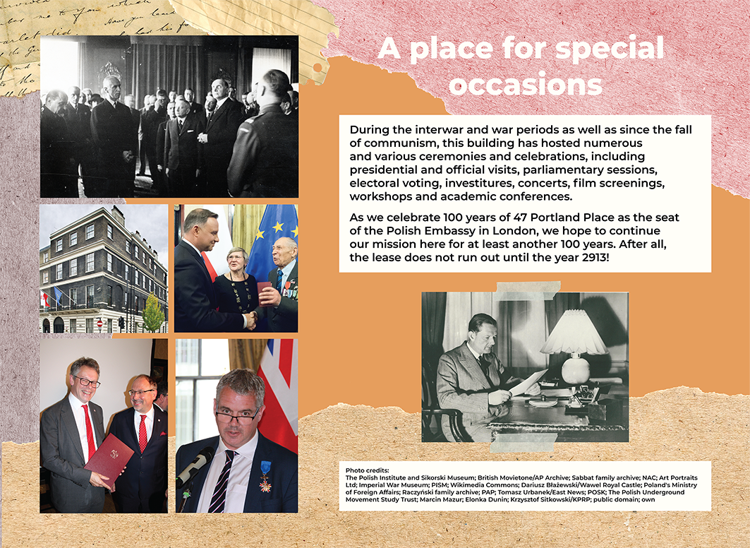 The display, titled "100 years of Polish Embassy at 47 Portland Place", presents the history of the building, including its connections to the Polish diplomatic mission, Poland’s Government-in-Exile and the Polish community in the United Kingdom, also highlighting the role the place has played in strengthening Polish-British relations.