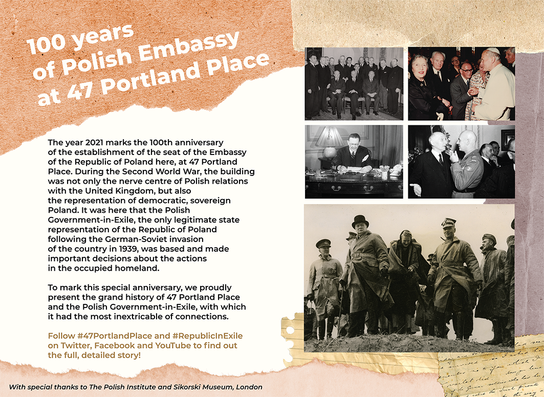 We invite you to view our exhibition marking the 100th anniversary of the establishment of the seat of Poland’s diplomatic post in London at 47 Portland Place!