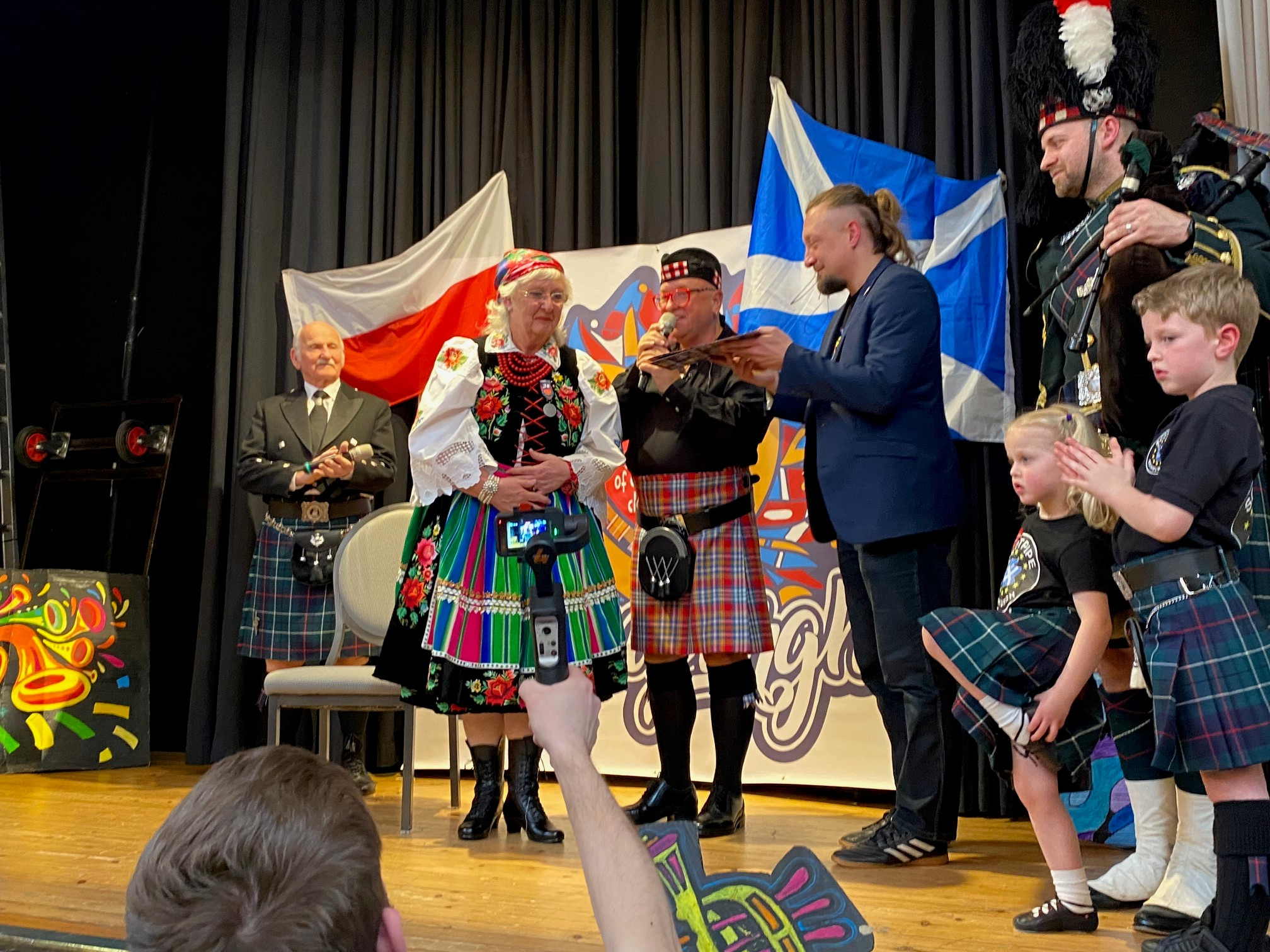 The highlight of the visit was a special reception in Edinburgh, where Jurek Owsiak was presented with the Scottish kilt. With the help of our Scottish friends, Jurek promptly donned the kilt and proudly displayed it to the gathered guests. In turn, Jurek Owsiak presented Mrs Lesley Duncan with a traditional Łowicz folk costume. The ceremony was deeply moving, with representatives from various Polish communities in attendance.