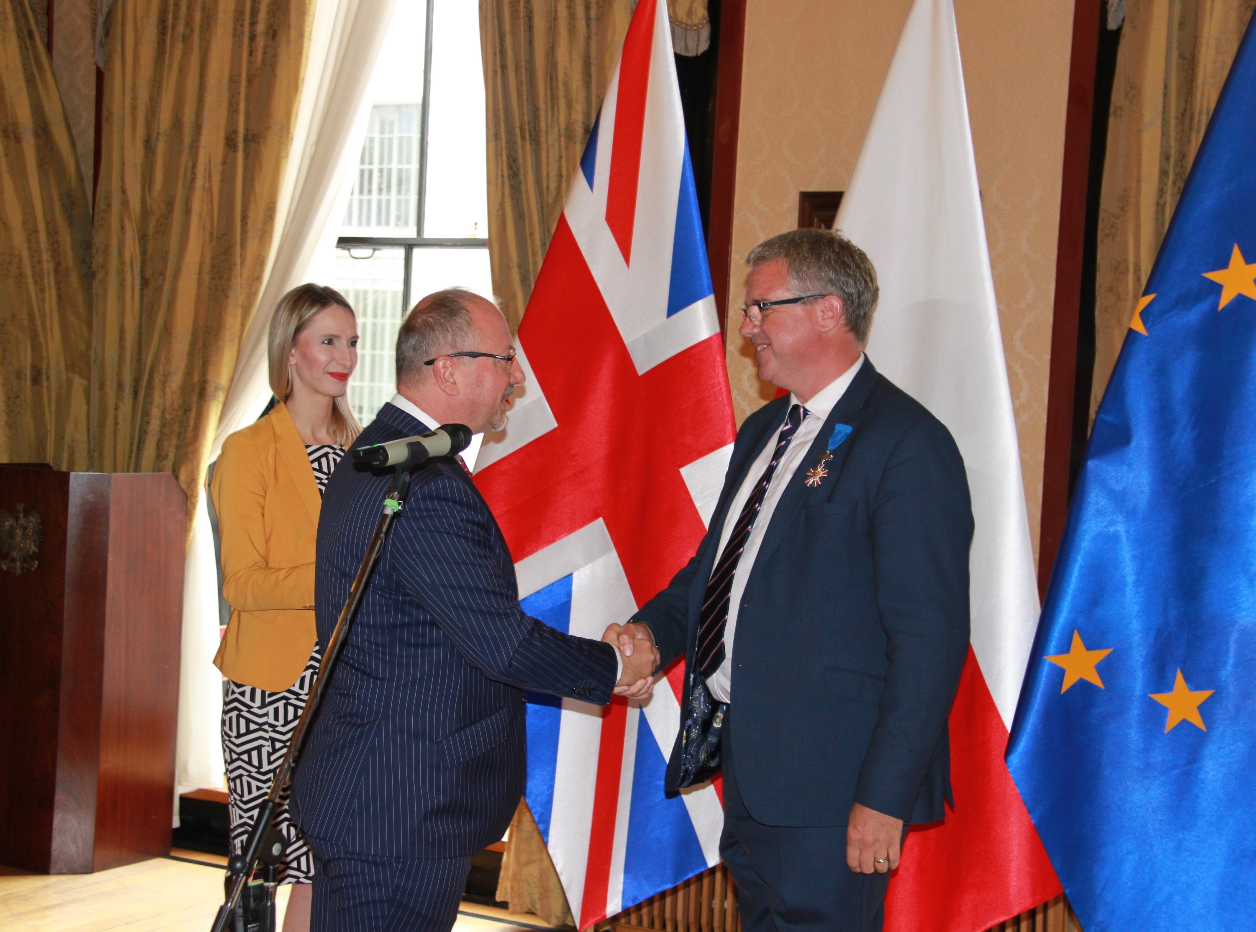 The British author, who specialises in modern German and Central European history and is a visiting professor at the College of Europe in Warsaw, received the Knight's Cross of the Order of Merit of the Republic of Poland from Polish ambassador to the UK Arkady Rzegocki on behalf of Poland’s President Andrzej Duda.