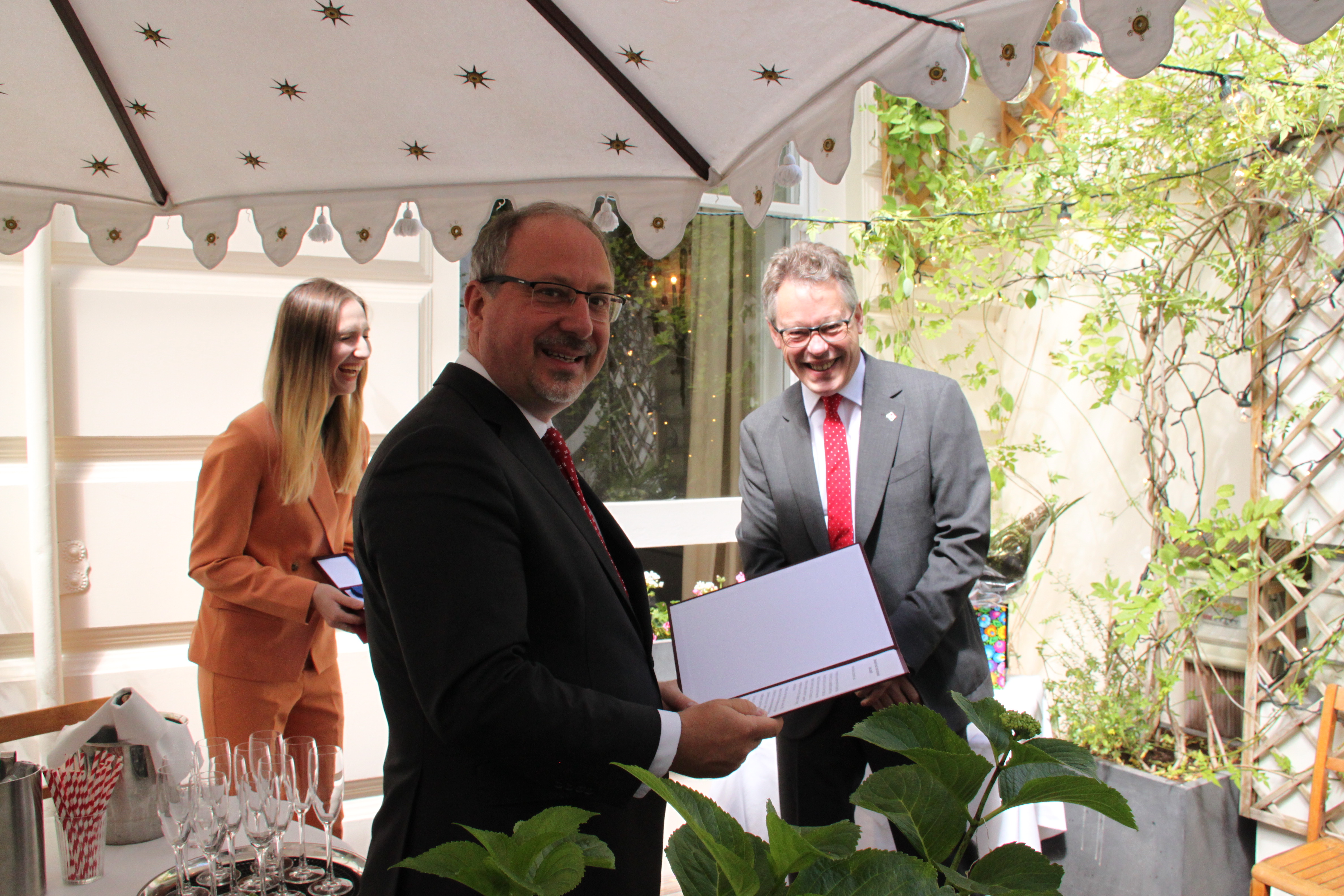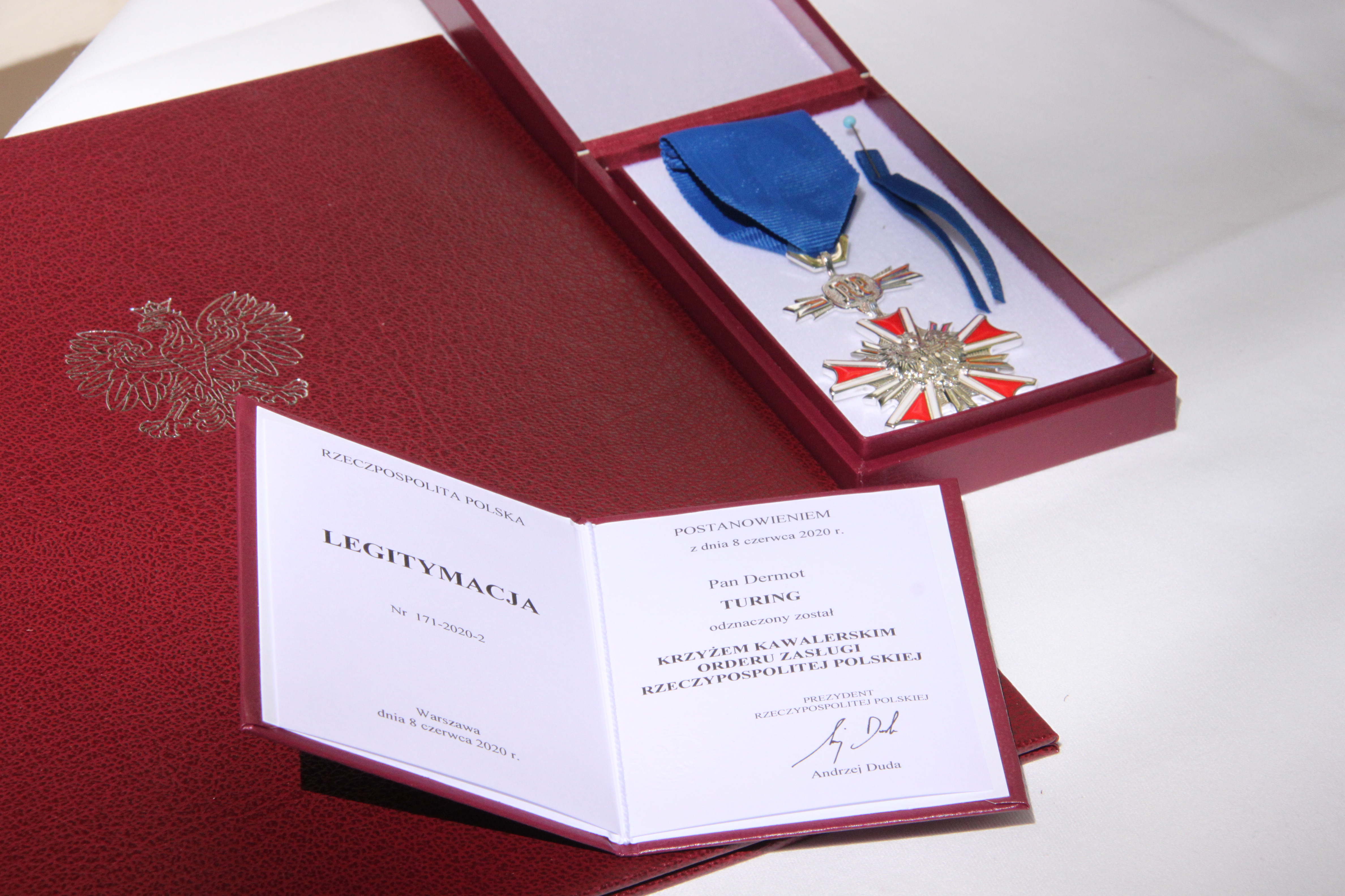 Ambassador Rzegocki added: ”The Knight's Cross of the Order of Merit of the Republic of Poland is a wonderful recognition of Sir Dermot Turing’s important, continued and tireless efforts to underline the role that Polish mathematicians played in deciphering the Enigma code, which helped shorten the war by up to two years. I am grateful for his work, for it helps to bring the real story of Enigma codebreaking into British public’s consciousness. I am honoured to be awarding this order on behalf of President of the Republic of Poland Andrzej Duda to an individual I am proud to call a friend of Poland.”