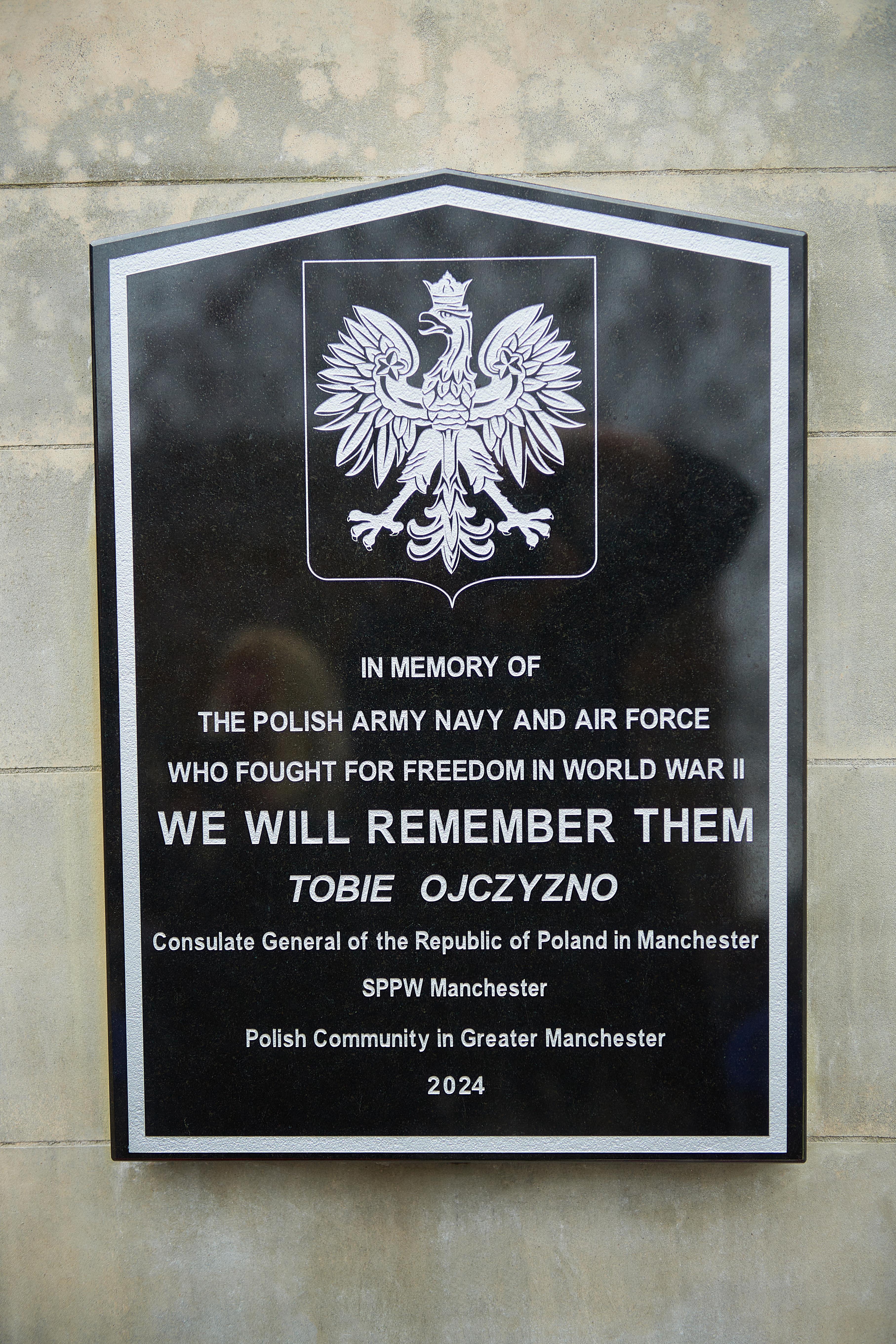 The plaque, dedicated to the Polish Armed Forces fighting during World War II, was unveiled on 3 May in downtown Manchester's St Peter's Square.