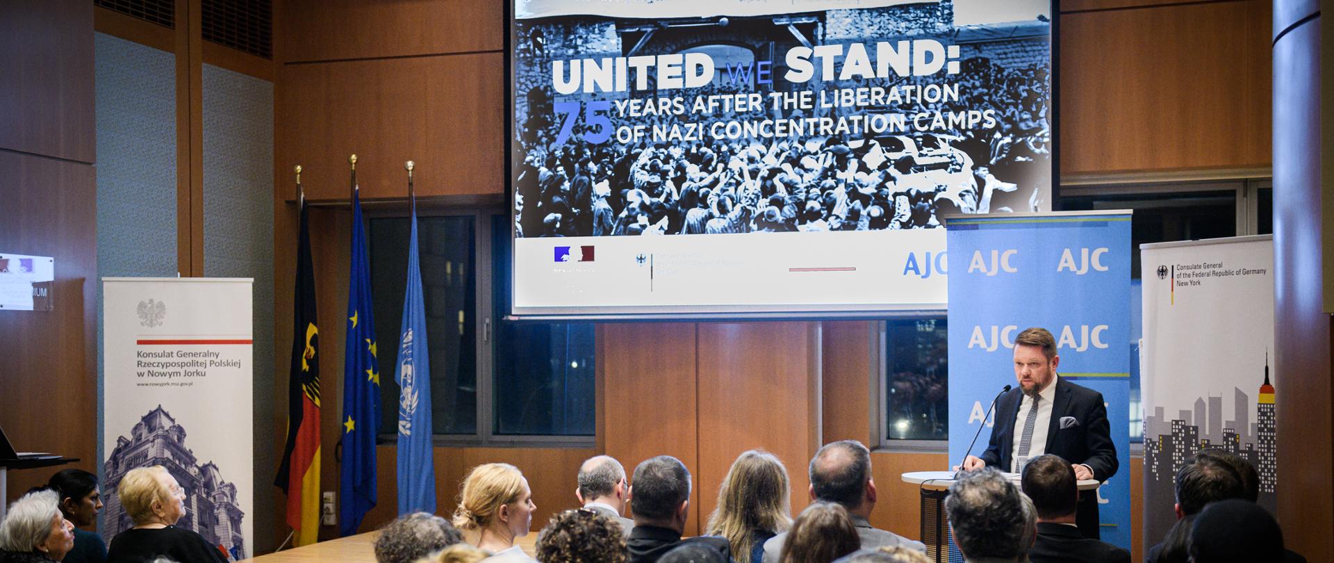28.01.2020Celebration of the 75th anniversary of the liberation of the German Nazi Concentration Camp Auschwitz-BirkenauOn January 28, 2020, as part of the celebration of the 75th anniversary of the liberation of the German Nazi concentration camp Auschwitz-Birkenau, the German Consulate General in New York hosted an event entitled "United we stand: Memory and reconciliation 75 years after the liberation of the Nazi concentration camps. The event was co-organized by the Consulate General of Poland in New York, the Consulate General of France and the Committee of American Jews (AJC).