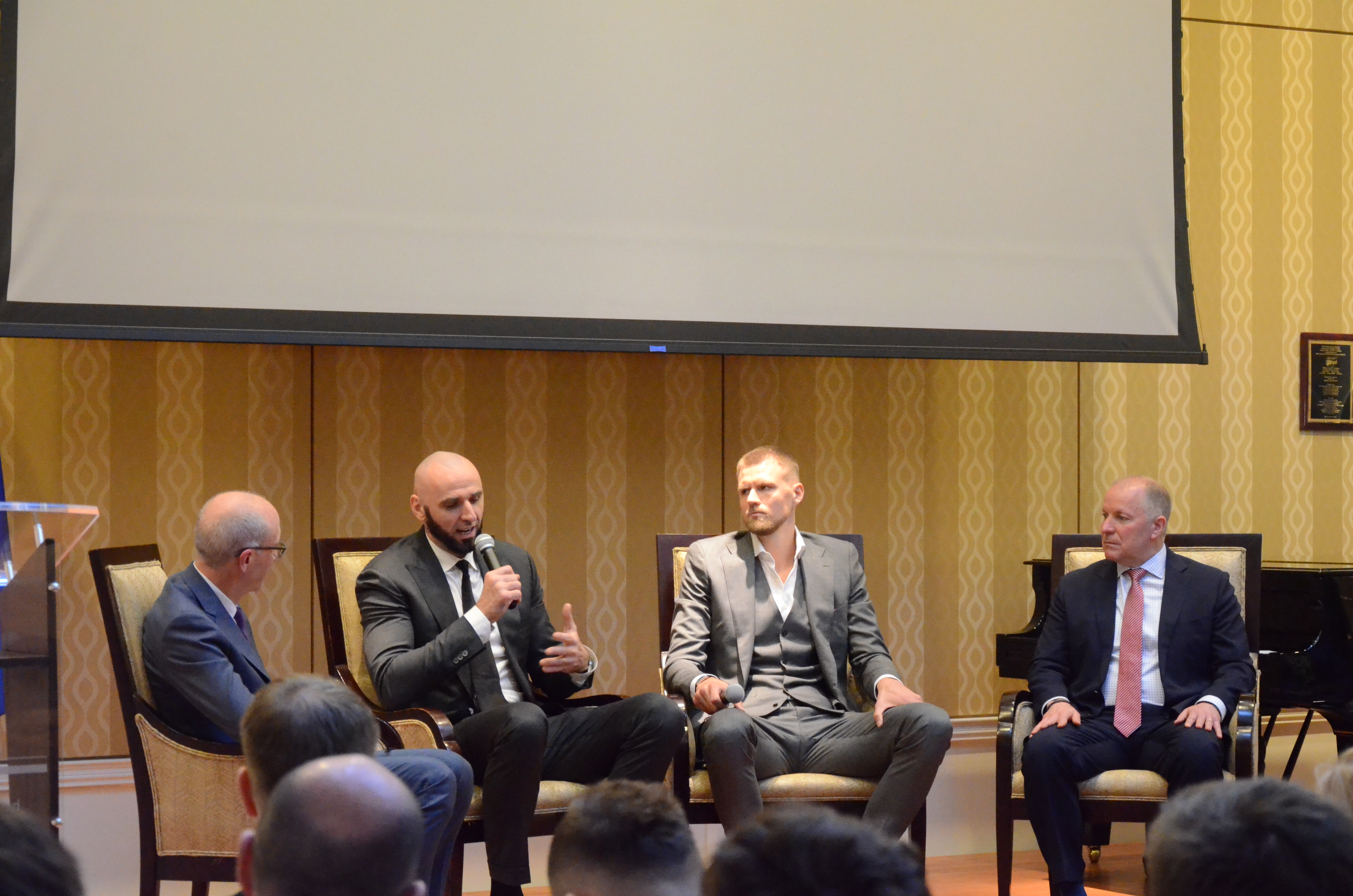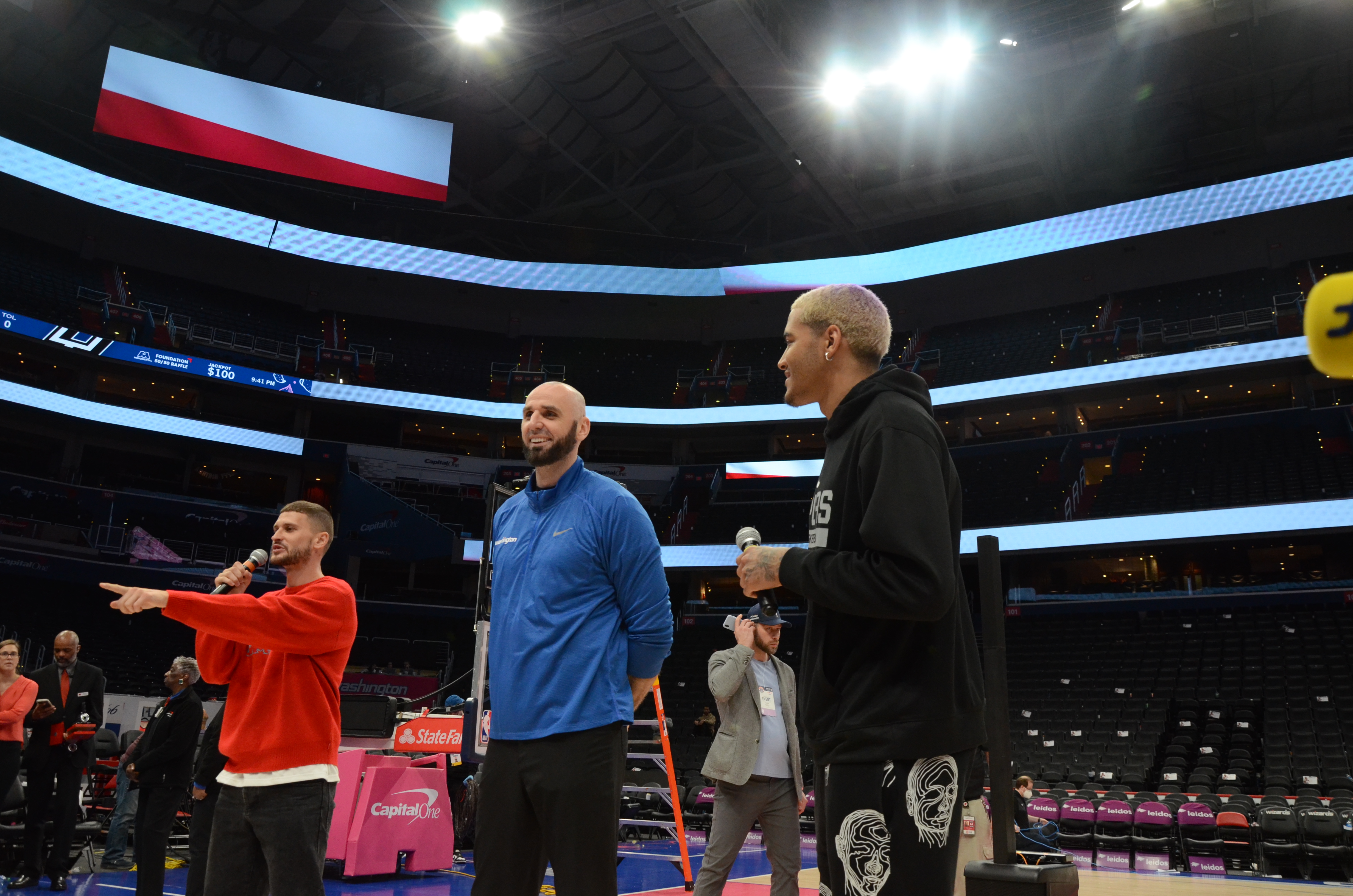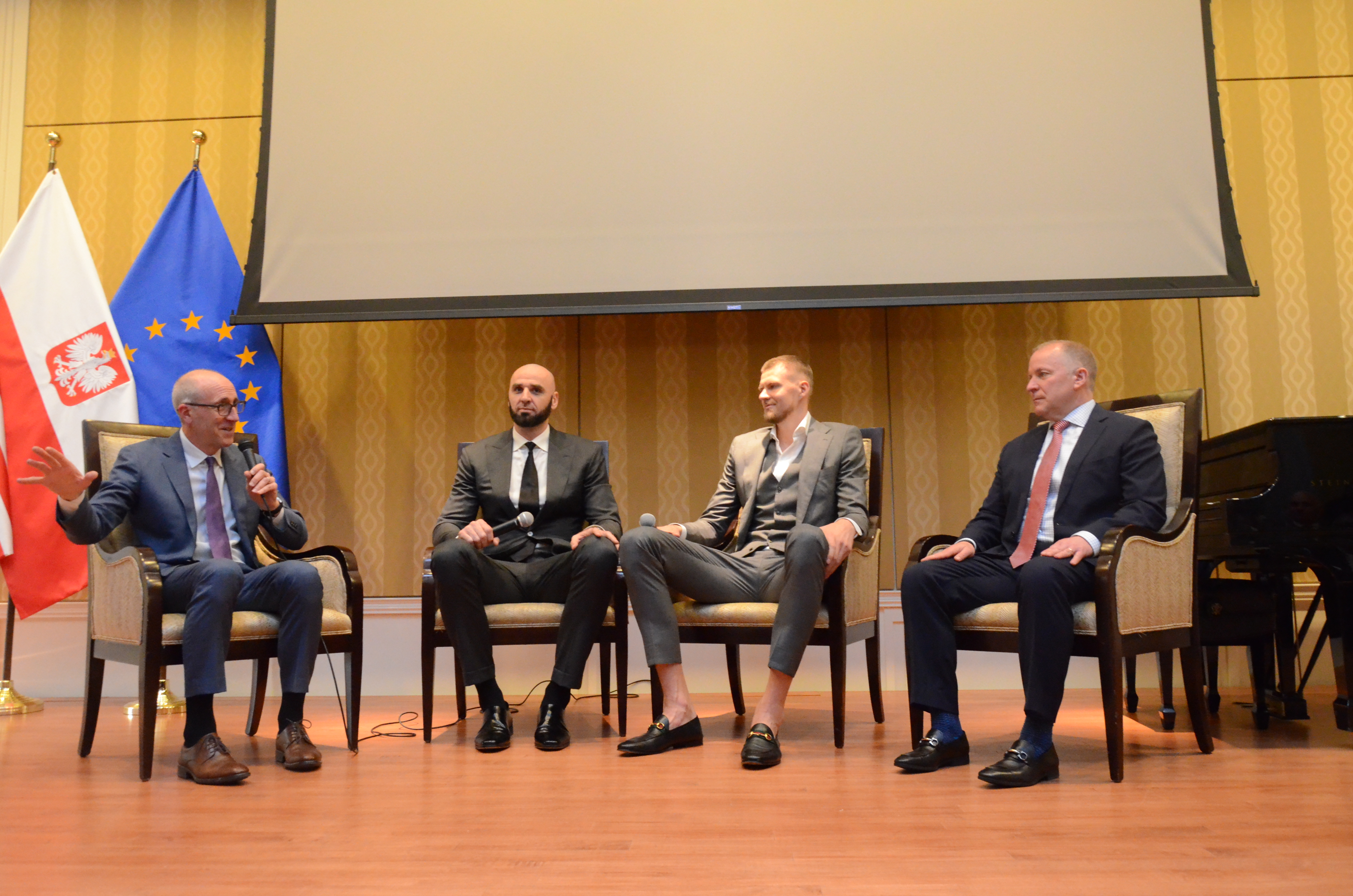 Then, a warm fireside chat between Marcin Gortat, Kristaps Porzingis, and Washington Wizards GM Thomas Sheppard, which moderated by NBC reporter Dan De Luce on how sports help youth overcome limitations & build strong character. Mr. Sheppard also highlighted how international players represent their countries in the NB and why it’s critical.