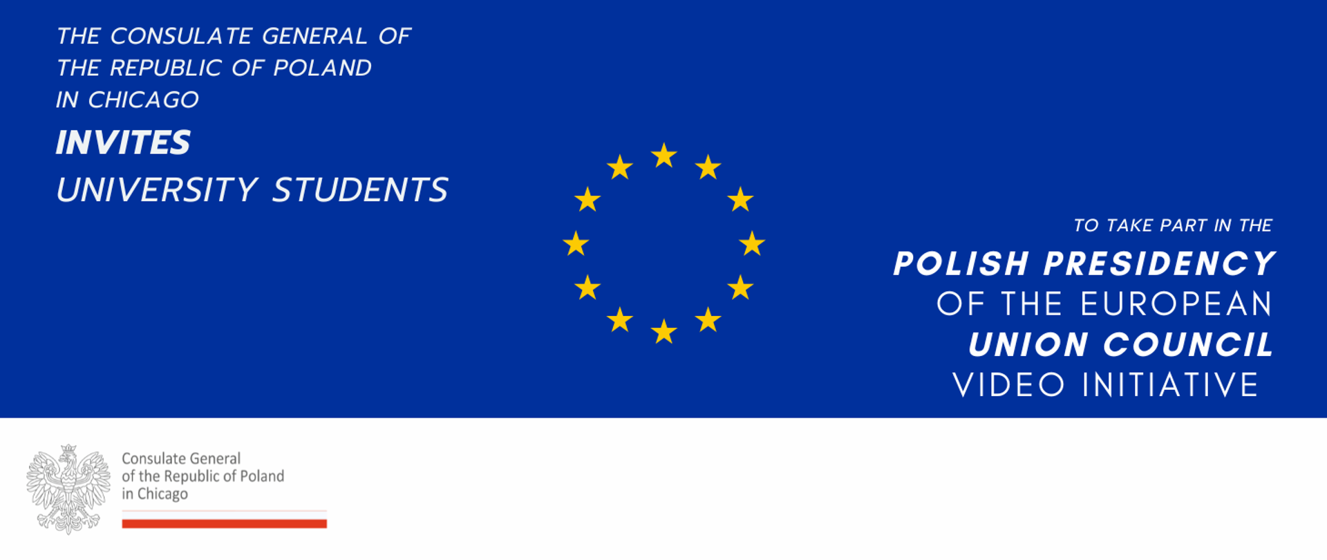 The Consulate General of the Republic of Poland in Chicago invites University Students within the Chicago Consular Region (Illinois, Indiana, Iowa, Michigan, Minnesota, Missouri, Nebraska, North Dakota, Ohio, South Dakota and Wisconsin) interested in the European Union to create a short video clip describing the importance of the Polish Presidency of the Council of the European Union. From among the submissions received by the Consulate, chosen videos, in part or in whole, will be used to create a compilation video published on the Consulate’s Social Media, published independently on the Consulate’s Social Media, or both.