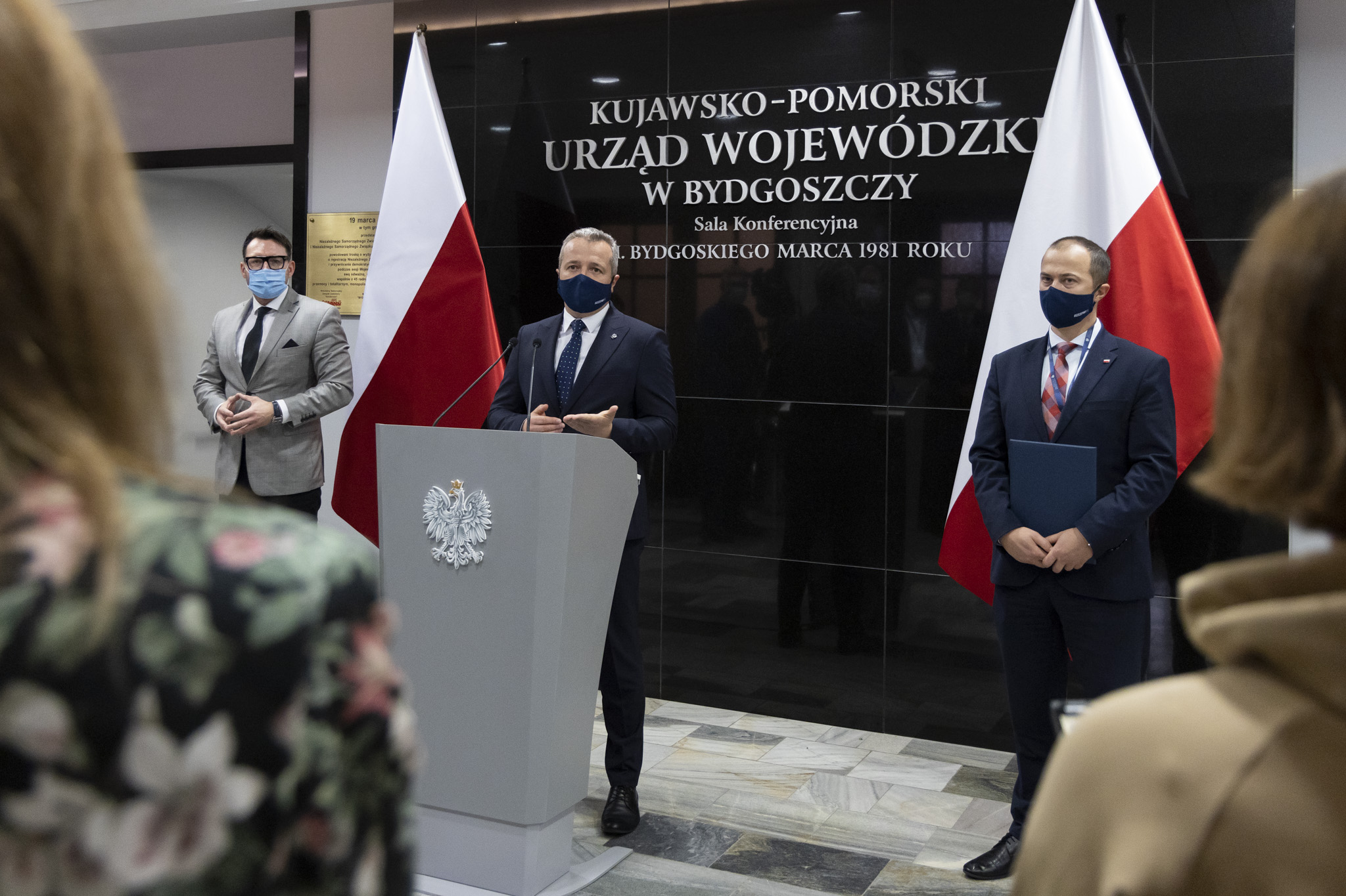 W konferencji prasowej uczestniczyli również II Wicewojewoda Kujawsko-Pomorski Radosław Kempinski i dyrektor Wydziału Bezpieczeństwa i Zarządzania Kryzysowego Rafał Rewoliński.