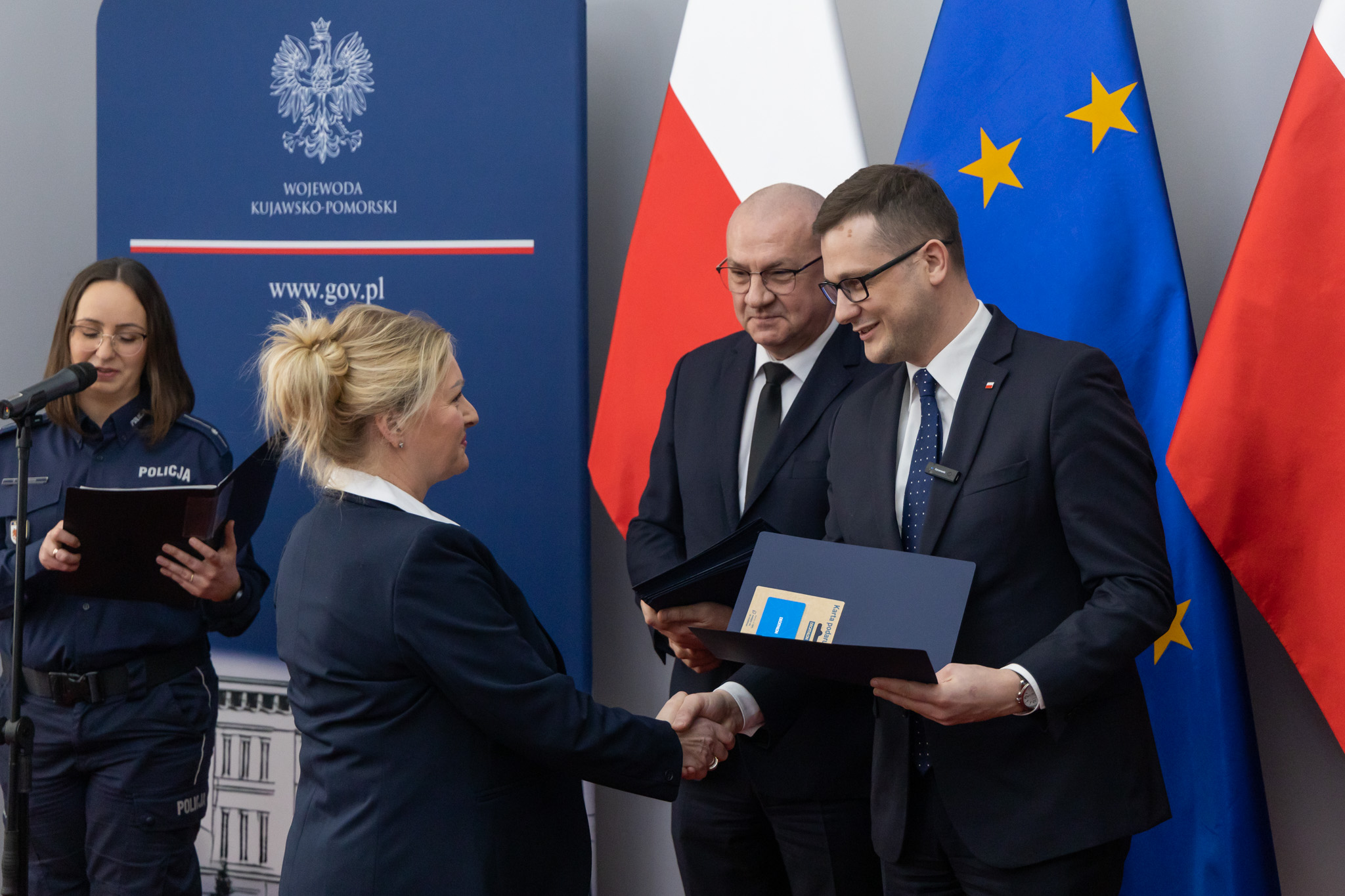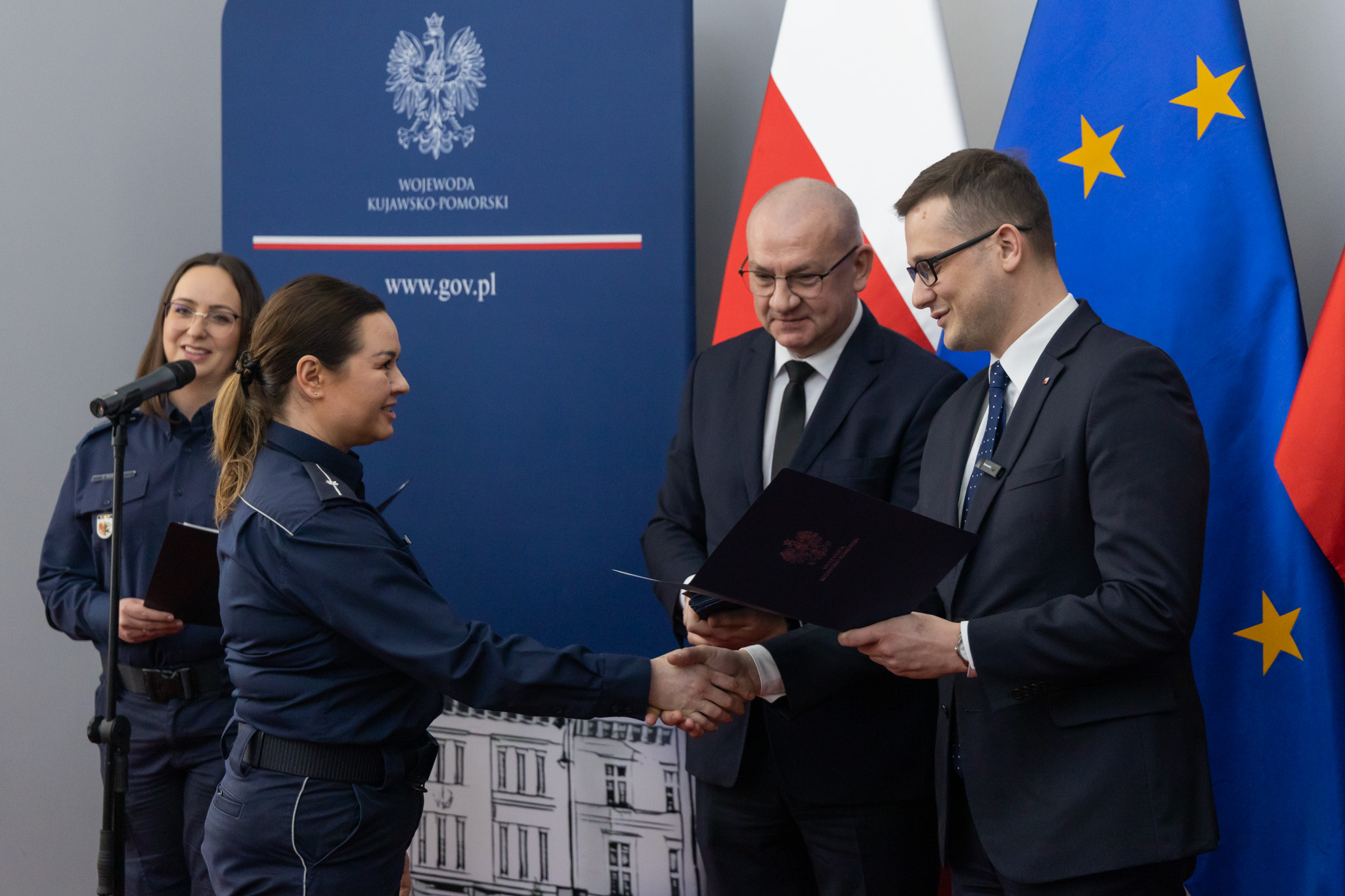 W uroczystości wziął udział Wojewoda Michał Sztybel, Komendant Wojewódzki Policji w Bydgoszczy Inspektor Jakub Gorczyński, Dyrektor Wydziału Bezpieczeństwa i Zarządzania Kryzysowego Sławomir Szymański oraz funkcjonariuszki i pracownice cywilne kujawsko-pomorskiego Garnizonu Policji.