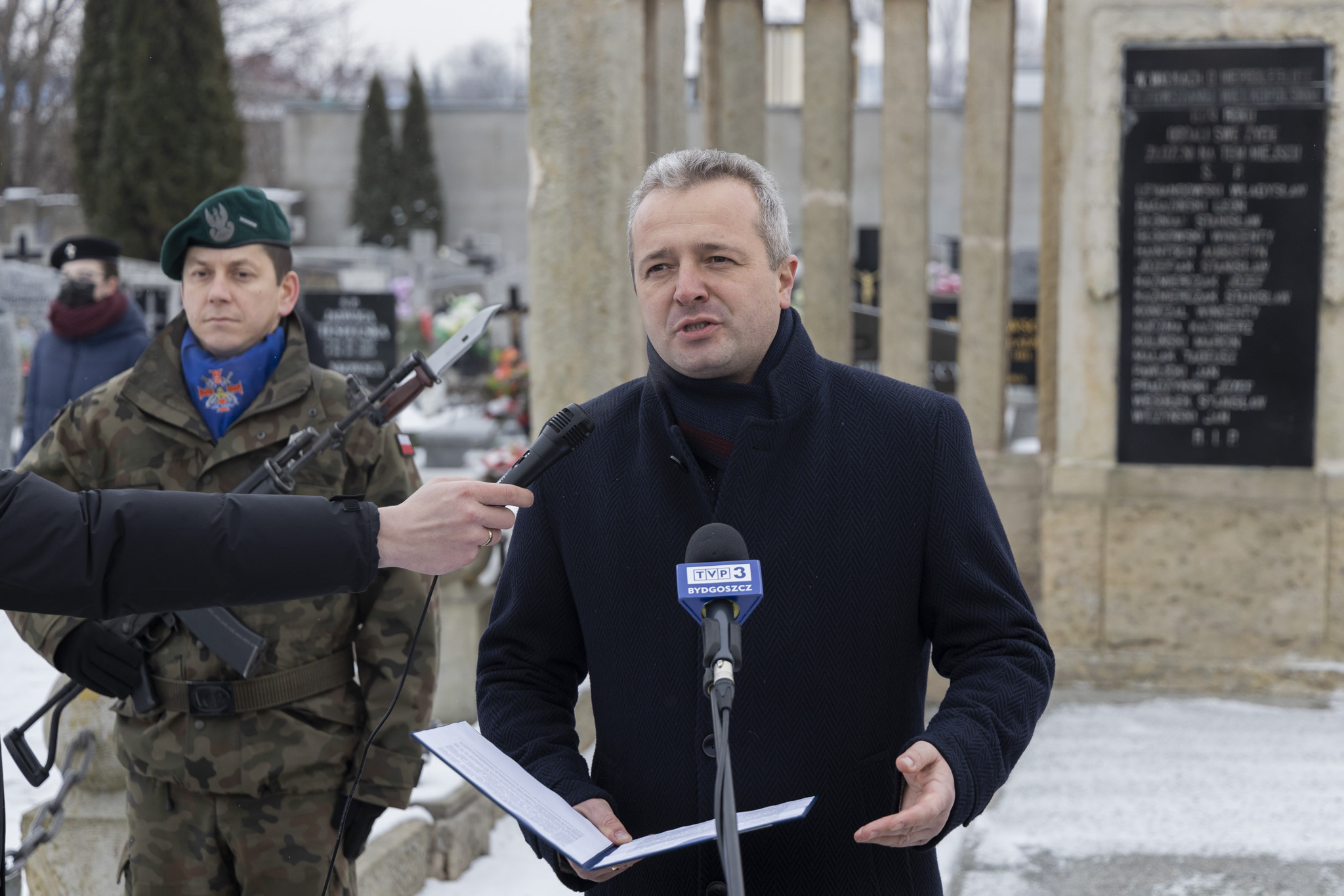 Dalsza część obchodów odbywała się przy grobie Powstańców Wielkopolskich na cmentarzu parafialnym przy ul. 700-lecia w Żninie. Tam wojewoda Mikołaj Bogdanowicz wraz z uczestnikami uroczystości złożyli kwiaty. Przedstawiciel rządu w województwie akcentował, że Żnin odegrał bardzo ważną rolę mapie powstańczych batalii.