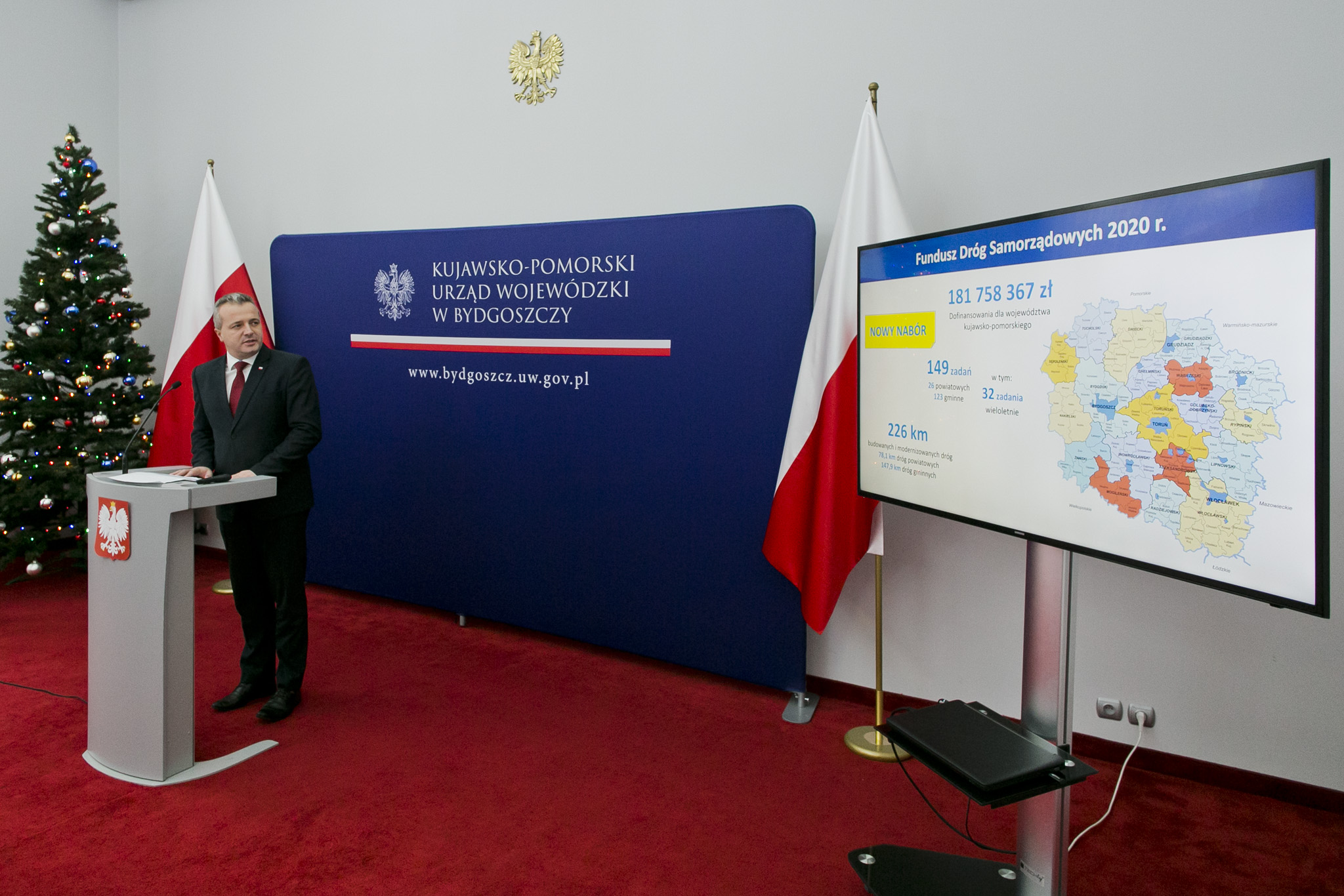 Blisko 182 mln złotych dofinansowania trafią do województwa kujawsko-pomorskiego w ramach rządowego programu Fundusz Dróg Samorządowych edycja 2020. O nowym naborze poinformował na konferencji prasowej wojewoda kujawsko-pomorski Mikołaj Bogdanowicz.